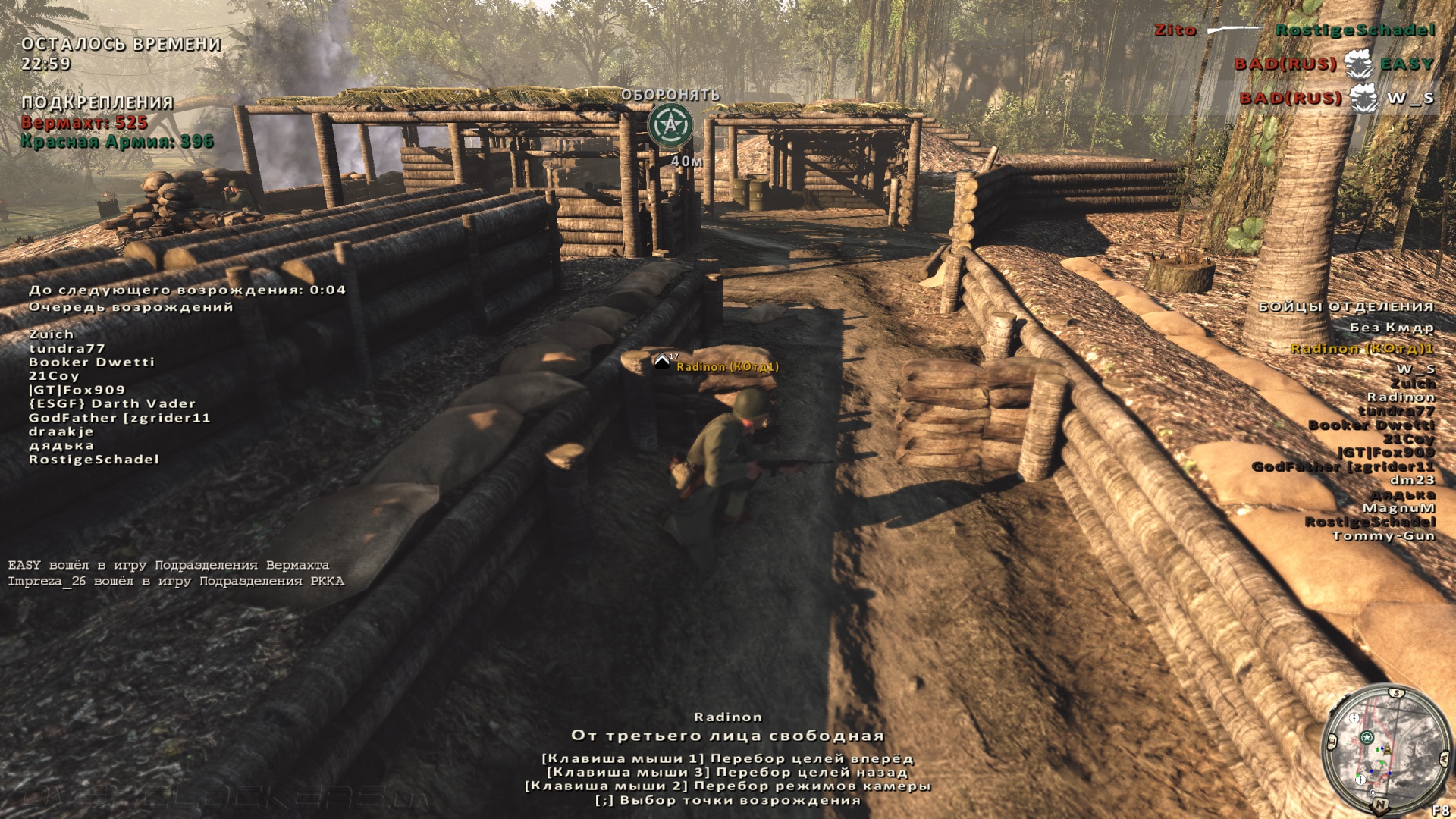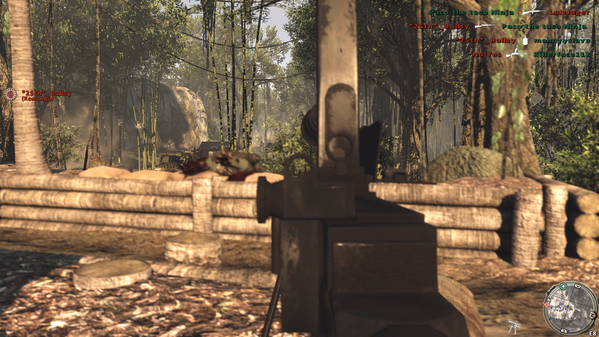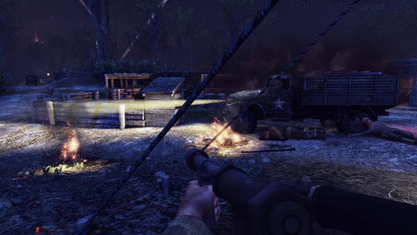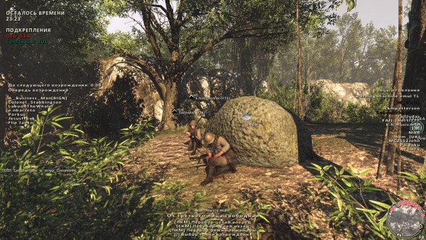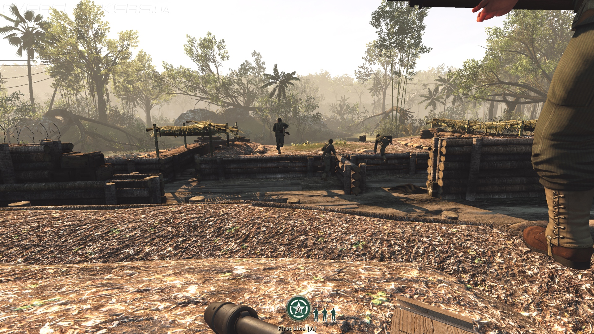 Больших открытых просторов нет. Например, в «Героях Сталинграда» была карта «Площадь Павших борцов», которую нужно было преодолеть для захвата зданий на противоположной стороне. При этом на самой площади почти не было укрытий, без дымовой завесы и артиллерийской поддержки выполнить задачу было невозможно. В Rising Storm больше укрытий природного и искусственного характера. Место действия совершенно иное — вместо степных просторов и разрушенного города тропические острова с буйной растительностью. А если где-то растительность не такая густая, то сам ландшафт сложный. И все это изъедено чередой различных укреплений, что еще больше помогает скрыть себя от лишних глаз.