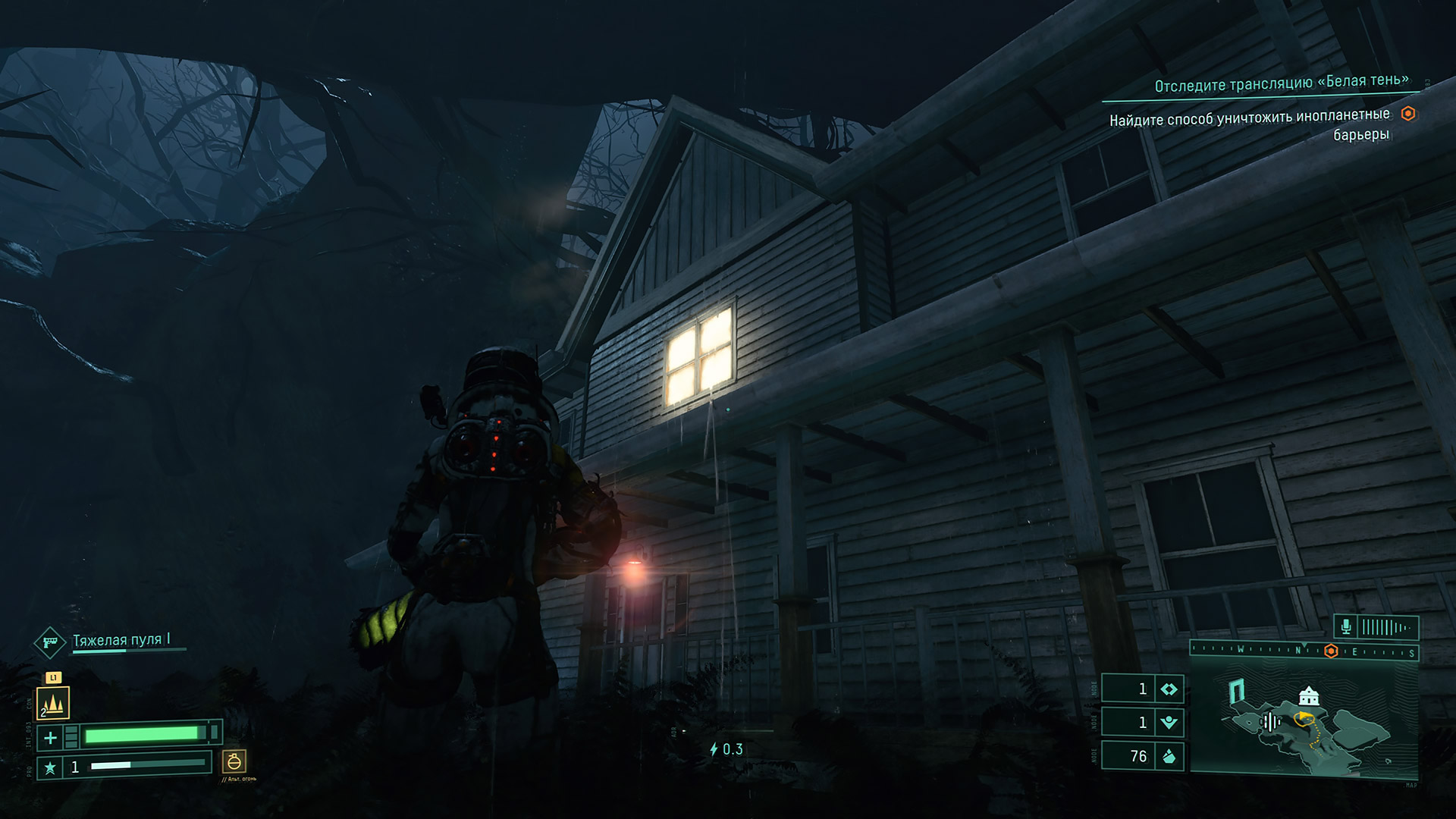 С основным оружием тоже не сильно разгуляешься. Пусть и с инопланетным дизайном, оно здесь максимально стандартное: пистолет дробовик, автомат, ракетница и нечто вроде плазмагана. Помимо основного огня, у каждой пушки есть более сильный альтернативный. Естественно, перезарядка у него намного дольше, а эффект мощнее. Видов альтернативного выстрела бывает много и разбросаны они на карте, как артефакты. Перезарядки и патронов у пушек нет, ведь героиня использует инопланетное оружие. Но оно перегревается, о чем сообщает специальный индикатор. А если вовремя нажать на R2, то оно проходит быстрее.