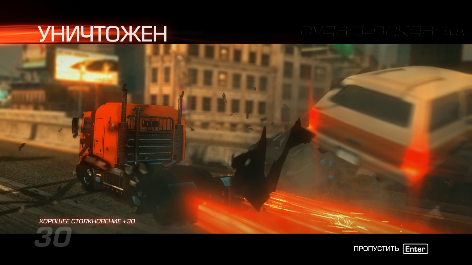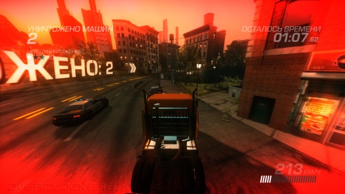 Польза от режима ускорения в возможности моментально разнести чужие машины на куски без всякого вреда для себя. Достаточно одного толчка и даже столкновения бортами, чтобы противник разлетелся на ошметки. И все это действо нам показывают в замедлении, меняя ракурс камеры, чтобы мы могли насладиться плодами своего дорожного вандализма.