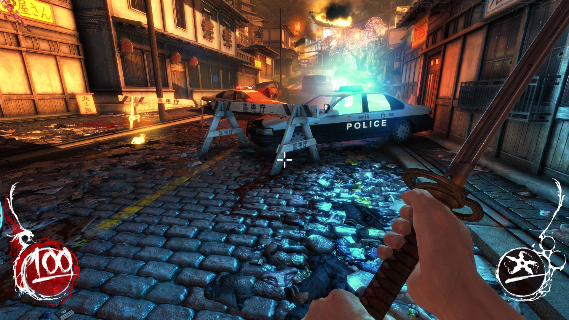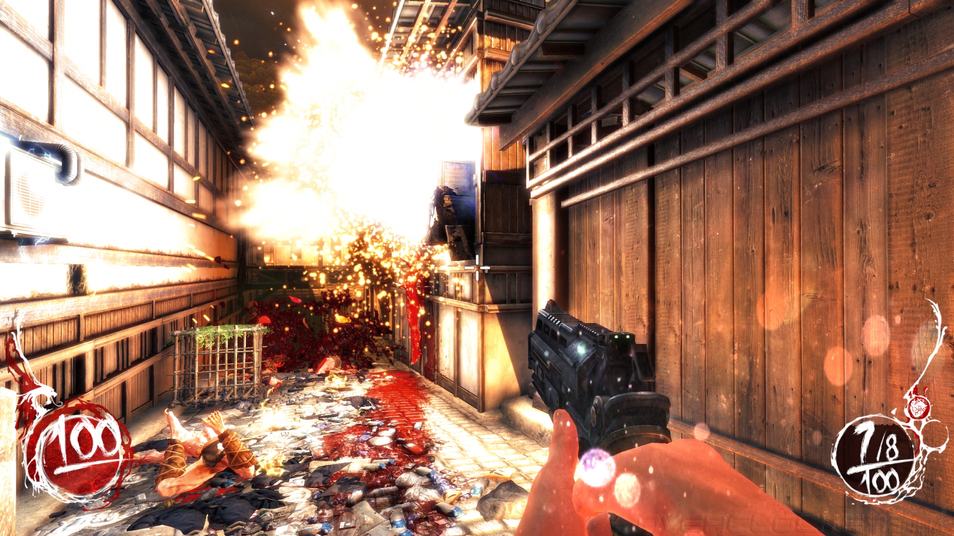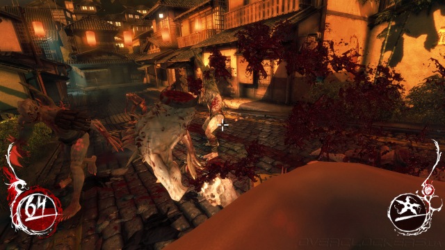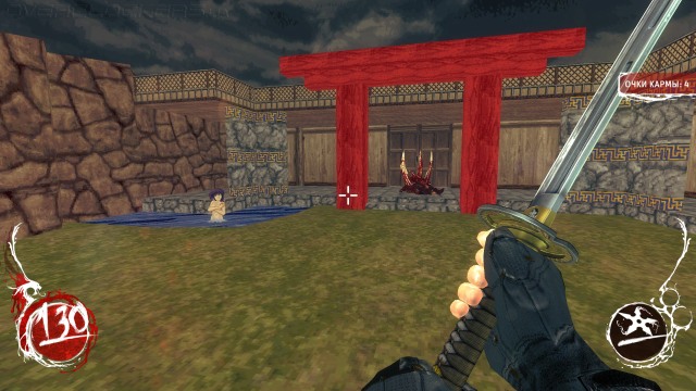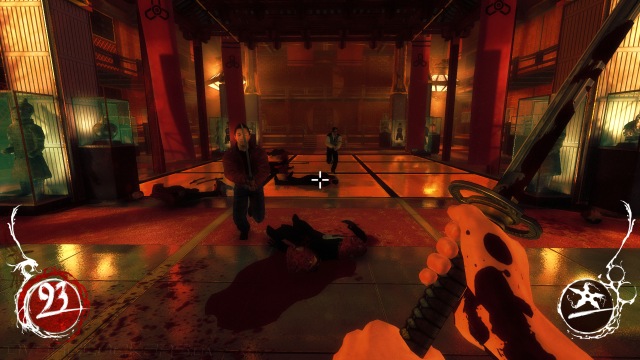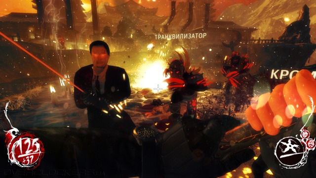 Непосредственно на игровой процесс наличие Ходзи в нашей голове никак не влияет. Во время боя нужно лишь стрелять поточнее и бегать пошустрее. Простые вроде бы правила для шутера, вот только оружие в игре не совсем привычное. Главным боевым товарищем станет катана, которой можно разделывать любых супостатов на составные части. Протагонист так умело орудует ей, отсекая головы и руки, что любо-дорого смотреть.