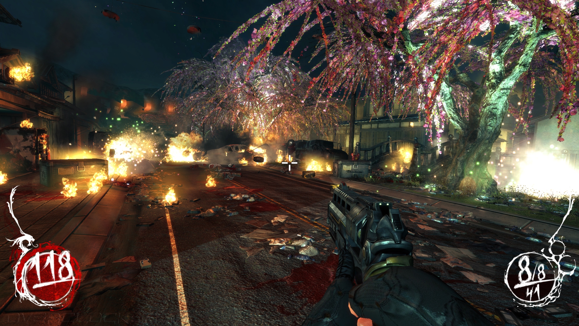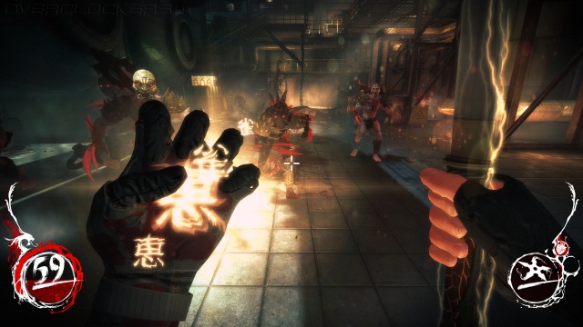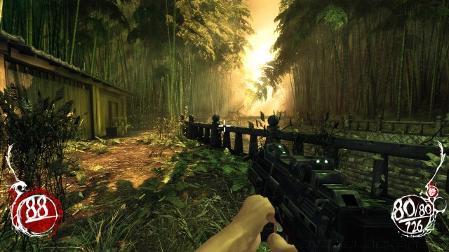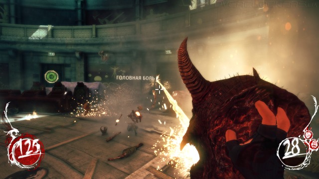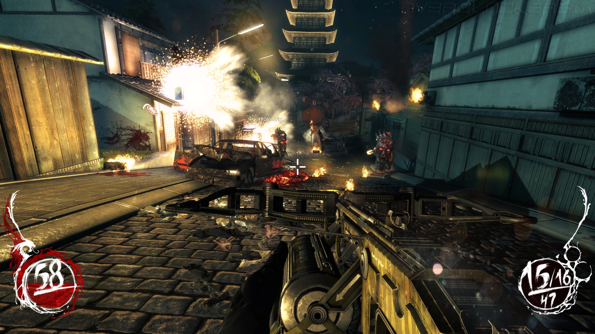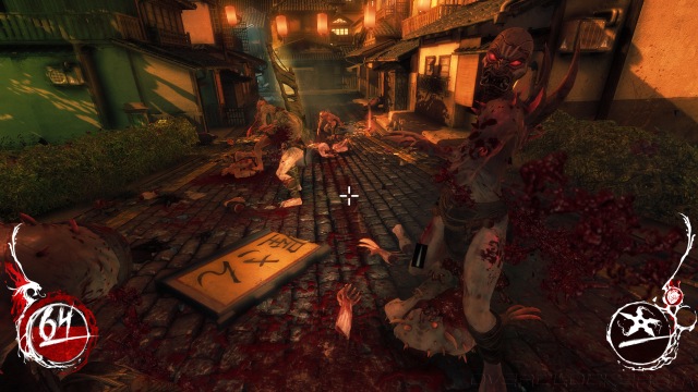 Непосредственно на игровой процесс наличие Ходзи в нашей голове никак не влияет. Во время боя нужно лишь стрелять поточнее и бегать пошустрее. Простые вроде бы правила для шутера, вот только оружие в игре не совсем привычное. Главным боевым товарищем станет катана, которой можно разделывать любых супостатов на составные части. Протагонист так умело орудует ей, отсекая головы и руки, что любо-дорого смотреть.