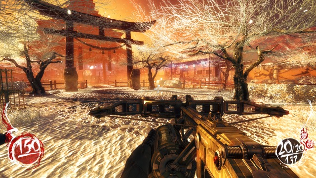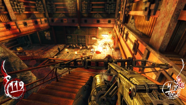 Shadow Warrior не пытается разыгрывать какие-то невероятные ситуации с крушениями, взрывами и замедлениями времени. Все держится исключительно на основной шутерной механике, когда монстров много и они сложные, а игроку нужно комбинировать все умения для успешного отражения атак. Вы можете с трудом разделаться с первым шаманом, а потом через некоторое время на вас натравят несколько их штук. На следующем уровне игра и вовсе предложит сочетание из разных мини-боссов на одной арене, что поначалу показалось бы смерти подобно. Помогает прокачка и приобретенный уже игровой опыт.