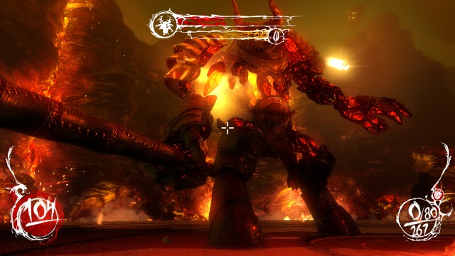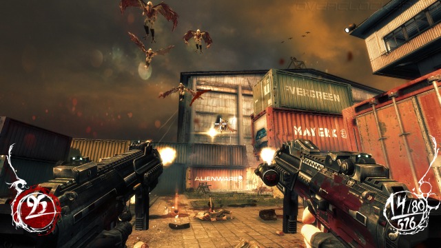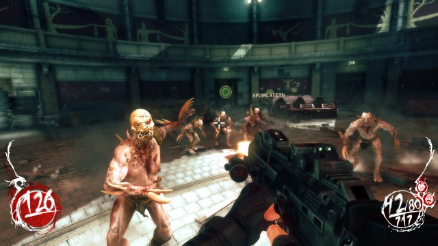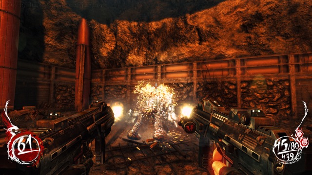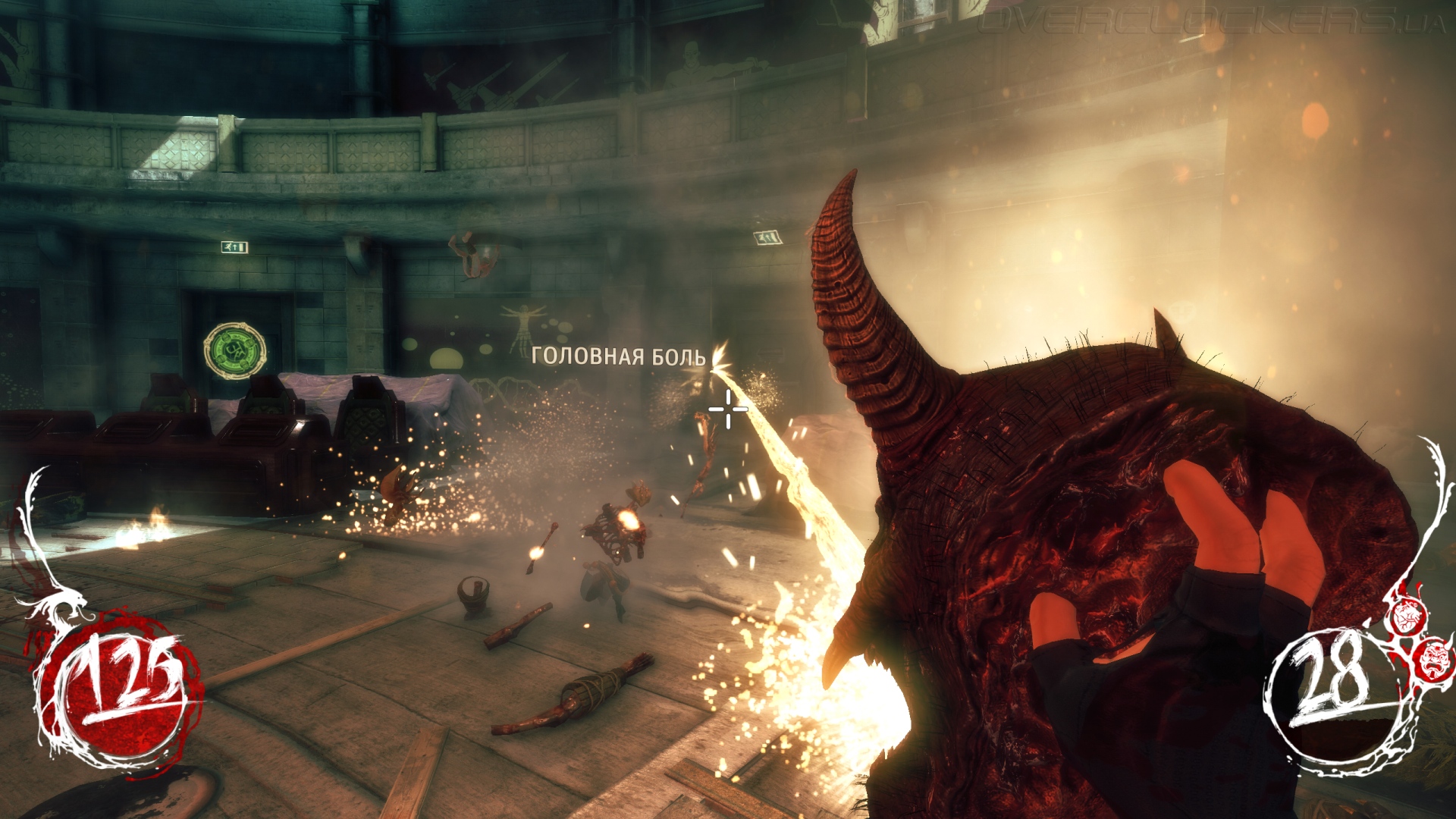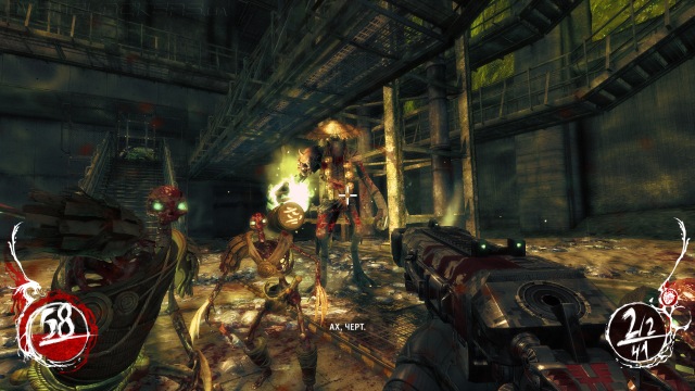 На первых порах нам скармливают небольшие компании когтистых монстров, которые ввязываются в ближний бой и поэтому легко разделываются на куски верной катаной. Потом появляются демоны, швыряющиеся файерболами, найдется место врагам со щитами. Тут уже в пылу сражения пригодится что-то активно выплевывающее свинец, дабы успеть проредить задние ряды, пока в окружение не взяла более простая «массовка». Летающих противников и вовсе мечом не достать — без автомата не обойтись, на крайний случай пойдут и сюрикены (альтернативный режим катаны).