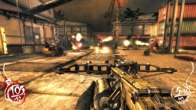 На первых этапах меч оказывается удобнее и мощнее огнестрельного оружия, но по мере роста сложности и количества врагов ценность всего остального арсенала начинает резко возрастать. Вначале нам доступен только пистолет, потом герой обзаведется автоматом, арбалетом, ракетницей и огнеметом. Каждое оружие имеет два режима — основной и альтернативный. Во втором случае предлагается более убойный вариант каждого «ствола». Например, можно стрелять из револьвера по-ковбойски в ускоренном режиме, использовать по два пистолета-пулемета в обеих руках или заряжать арбалет гранатами.