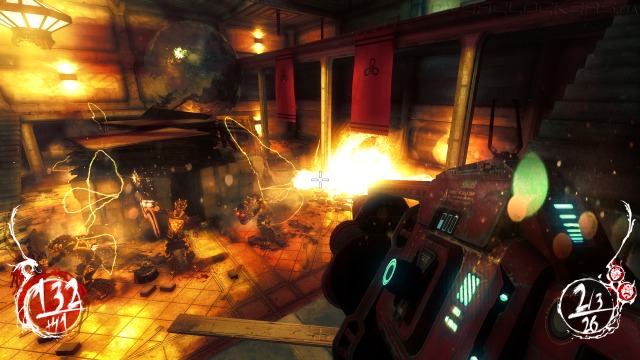Вспомогательным элементом является окружение. По аналогии с Hard Reset новая игра наполнена разрушаемыми объектами, и их еще больше. Любая машина, автомат по продаже напитков, чаша с огнем или кондиционер на стене готовы взорваться и осыпать все вокруг снопами искр. Присутствуют и традиционные бочки с топливом. В удачно выбранный момент такой объект может сработать против врага. Словить подобный момент не всегда удается. Когда нужно постоянно уклоняться, бегать, выполнять какие-то комбинации для создания мощного удара катаной или лечения, то можно не успеть моментально сменить оружие и подбить настенный кондиционер или взрывающуюся бочку возле монстра. Зато после неудачного боя, когда произведена определенная разведка на уровне, начинаешь более активно использовать окружение, намеренно подманивая толпы монстров в нужную зону.