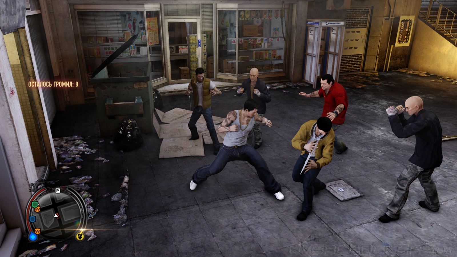 Такие способы уничтожения врагов максимально быстрые и эффективные. Но для их выполнения нужно вначале провести захват, что в случае с самыми крепкими бандитами весьма проблематично — они легко сопротивляются и зачастую их предварительно нужно оглушить. А еще есть здоровяки, которые и вовсе не даются в руки, зато сами норовят схватить вас и повалить на землю, чтобы добить ударом ноги. С такими сложнее всего. Лучшей тактикой является избегание близкого контакта с ними, пока не разделаетесь с простыми бойцами. Еще под конец напрягает излишняя живучесть даже обычных супостатов, которые выдерживают множество мощных ударов и часто уклоняются от ваших атак.