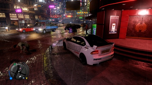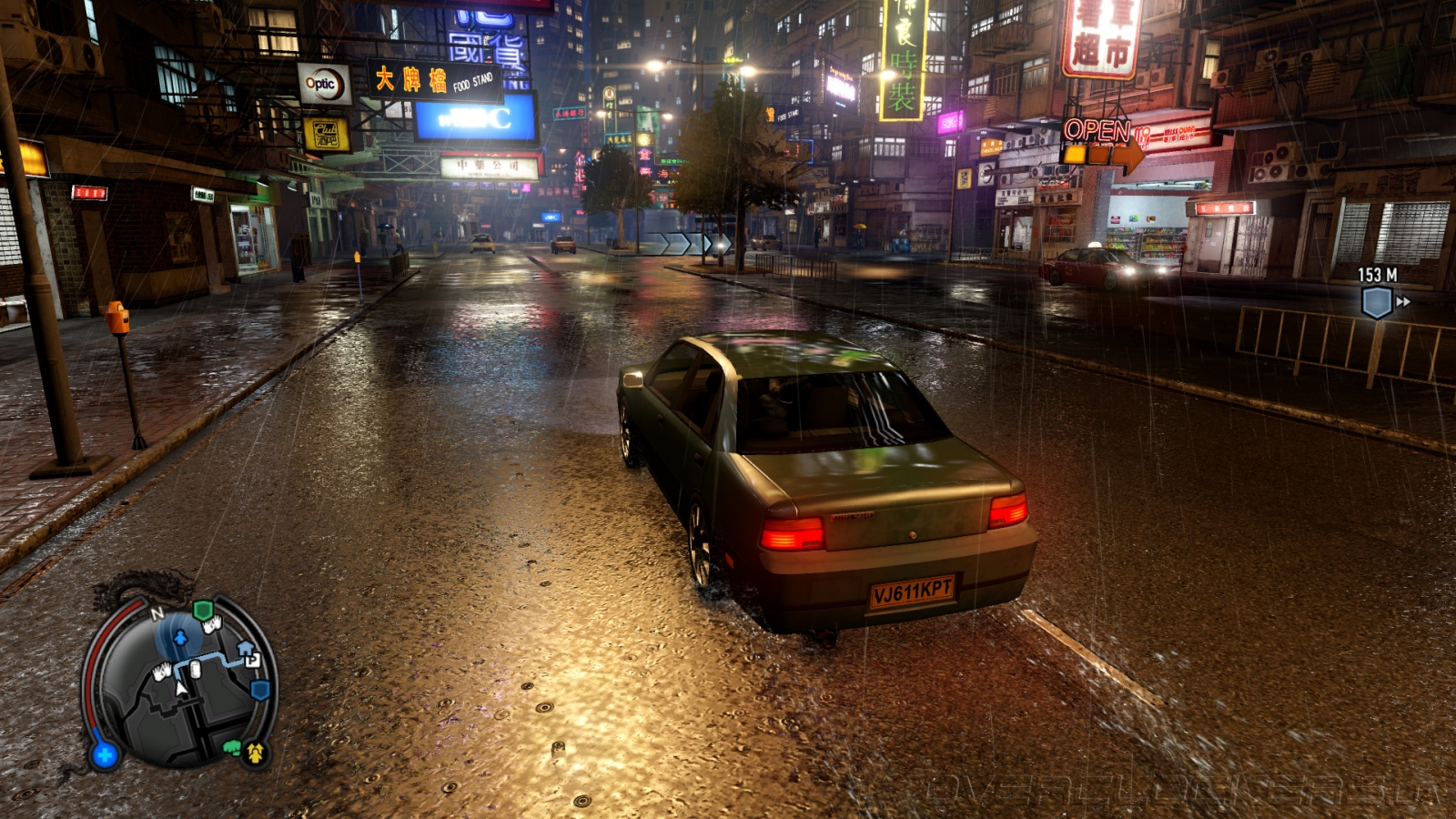 Выглядит игра приятно. Особенно радуют красивые виды ночного мегаполиса с множеством горящих неоновых вывесок и огней. А если еще и дождик идет, то мокрый асфальт будет искриться яркими бликами и отражениями.