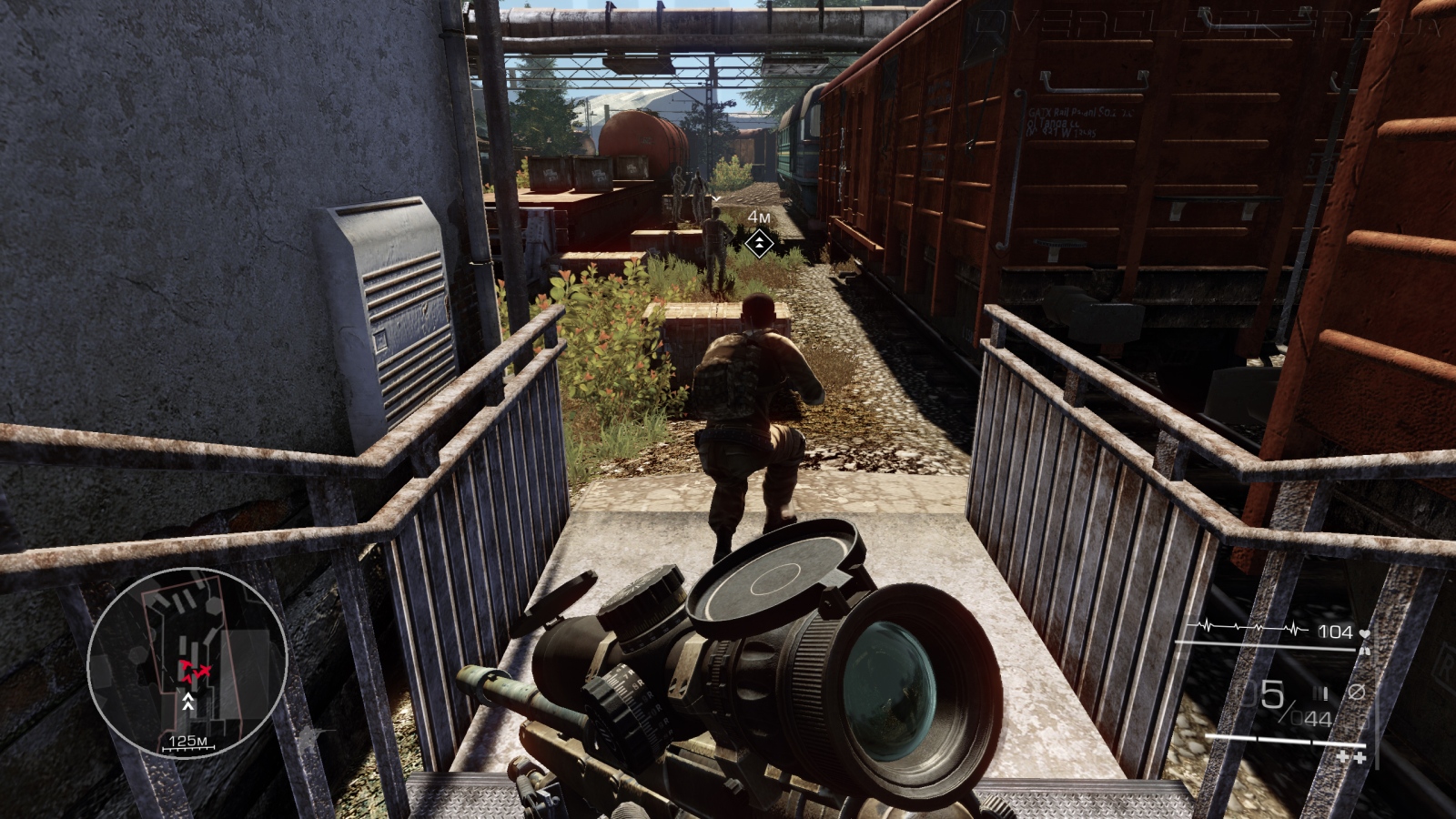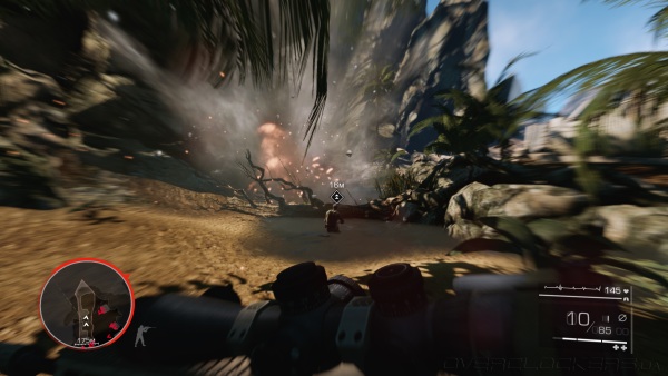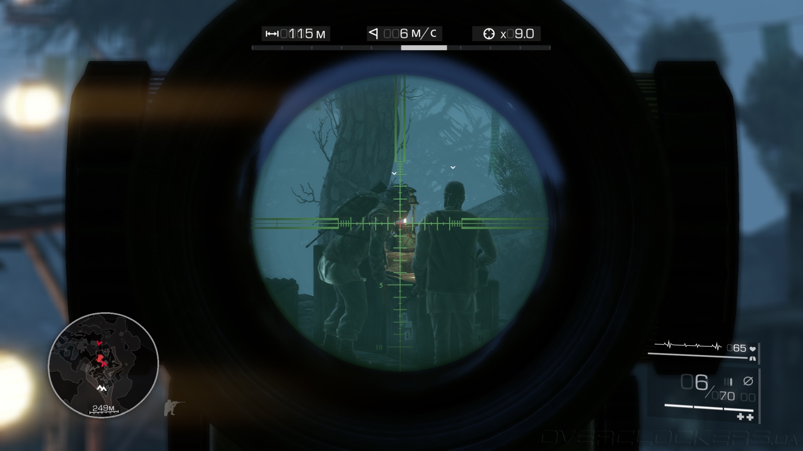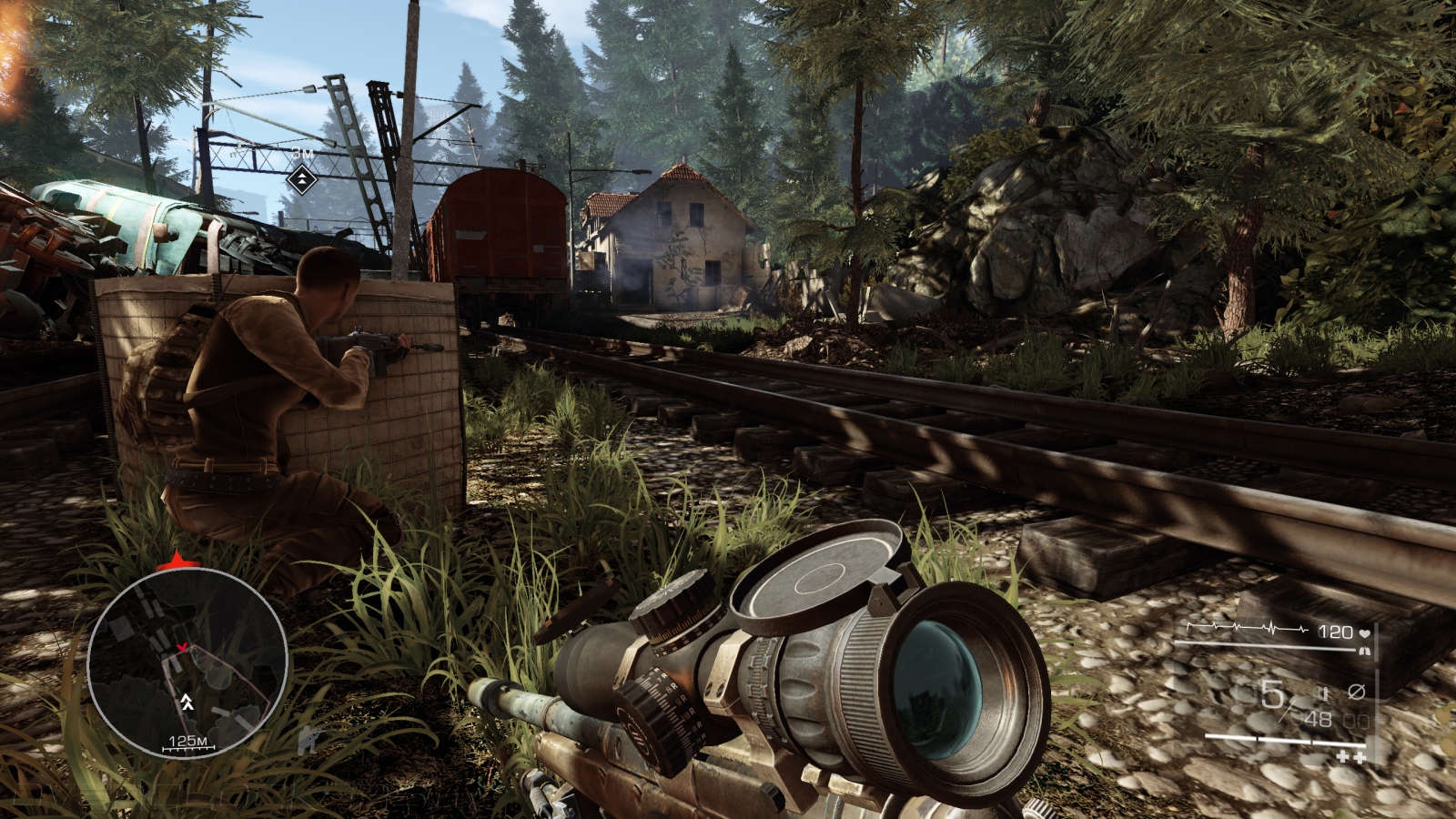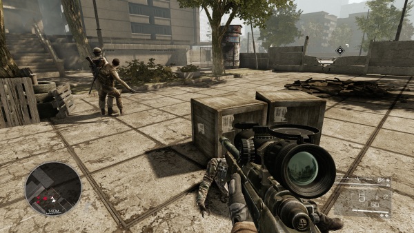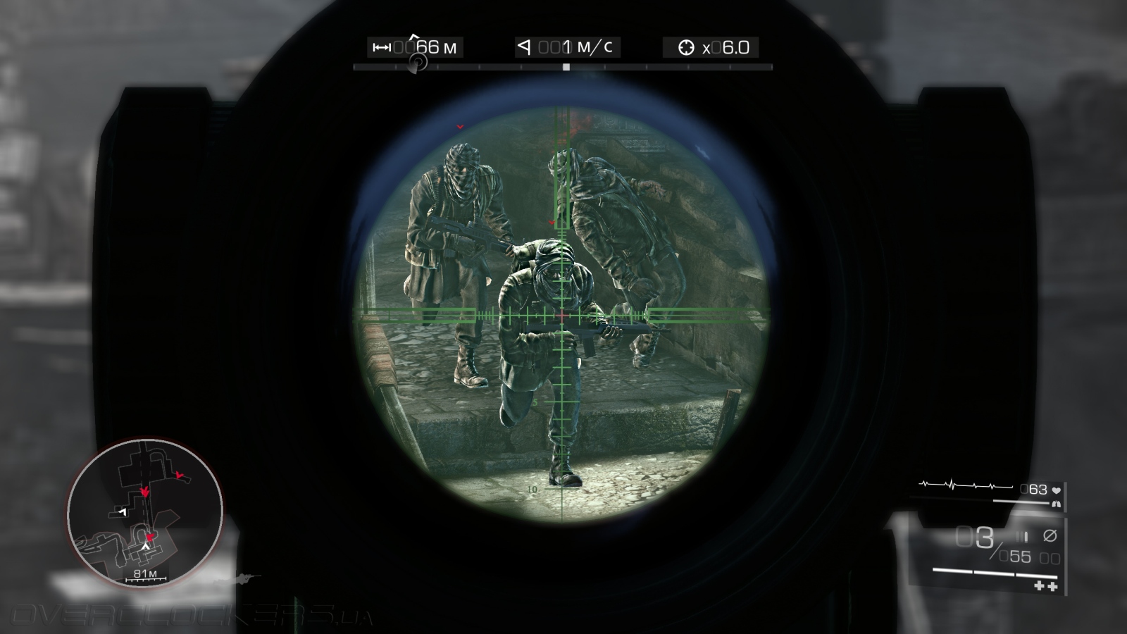 Сами ощущения от стрельбы весьма неплохие. Тут есть сложная баллистика, где нужно учитывать расстояние и влияние ветра. Присутствует прямая зависимость стабильности прицела от дыхания и, как следствие, нашей усталости. После пробежки прицел скачет как бешенный. При этом выдержки героя на длительные забеги не хватает — чувствуется, что на себе он несет тяжелую амуницию. Из положения стоя попасть намного сложнее, чем сидя или лежа. Никуда не исчезла камера, демонстрирующая полет пули во время самых удачных попаданий или при уничтожении последнего на карте врага.