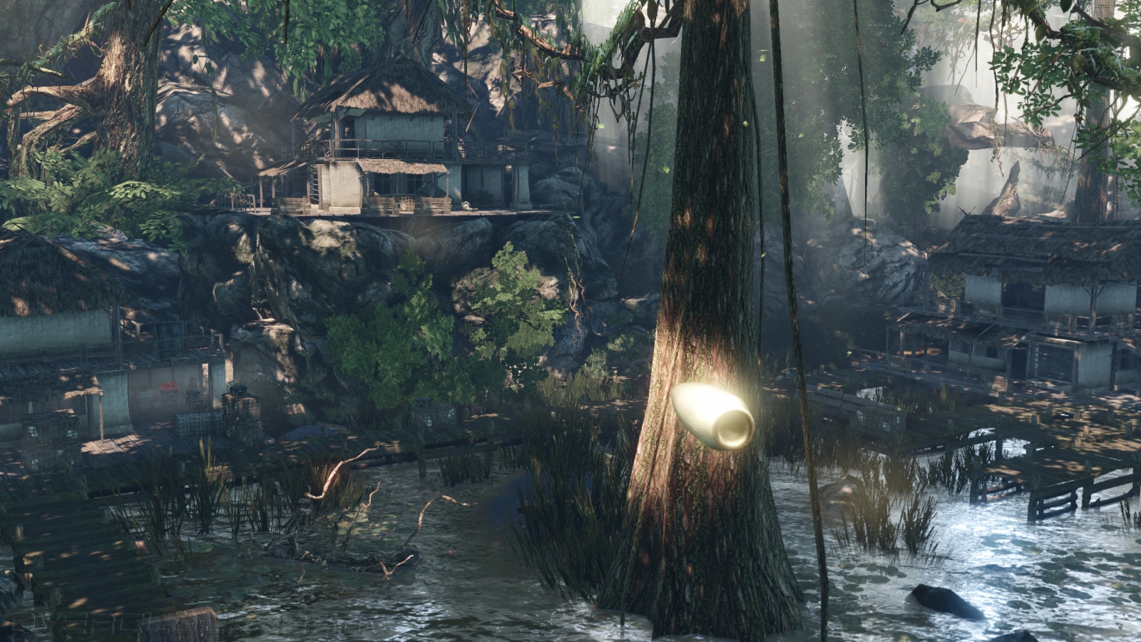 Более убедительным стал стелс. Раньше враги раздражали избирательной видимостью, а предлагаемый нам маршрут выглядел зачастую очень неубедительно в антураже ярких тропических декораций. Теперь же мы всегда действуем в тени. Есть и ночные уровни. Причем ночи в Ghost Warrior 2 настолько темные, что просто необходимо включать прибор ночного видения. Уровни стали теснее. Там где нужно пробраться тихо сквозь отряды противника нет никакого подобия вариативности — простой линейный коридор, в котором нужно избегать света и взглядов патрульных. В последнем помогает радар, на котором метками отображается положение солдат и направление их взгляда. Появился еще и индикатор нашей заметности. Когда он заполняется, нас тотчас обнаруживают и открывают огонь на поражение.