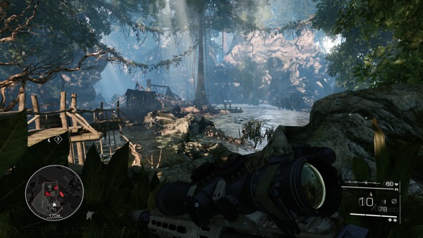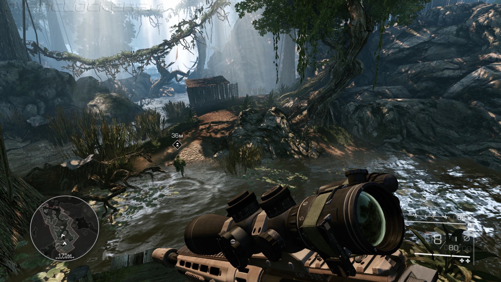 И разработчики действительно пошли не определенные изменения. Вот только положительных изменений оказалось катастрофически мало. С первых секунд нас ведут по строгой скриптовой тропинке. Напарник дает указания, когда присесть в зарослях, когда делать перебежку до следующего укрытия, когда снимать противников: «Один на десять часов, теперь второй на двенадцать, а тут ждем пока пройдет патруль». И это практически вся суть нового Sniper: Ghost Warrior.