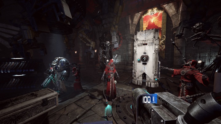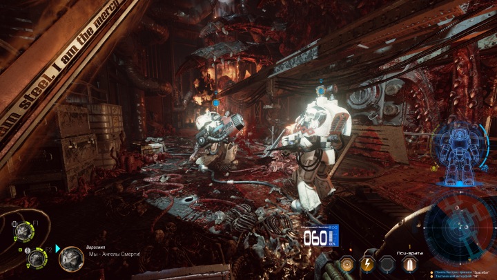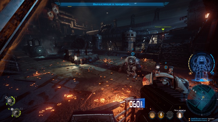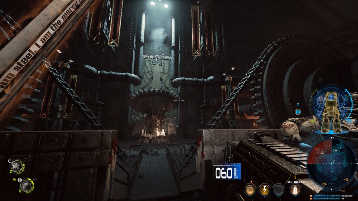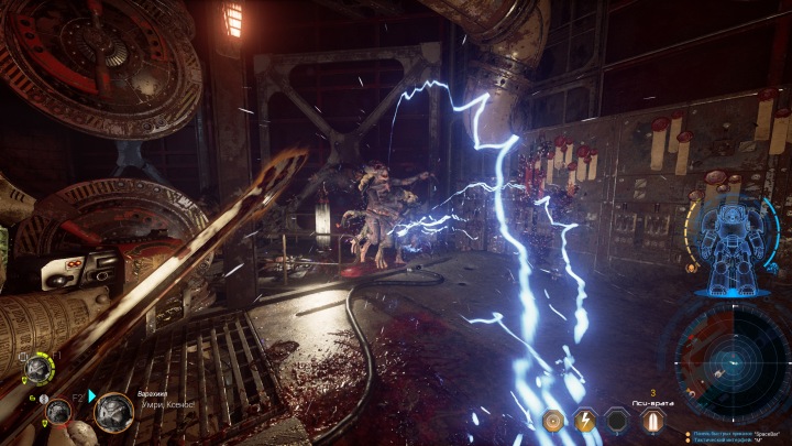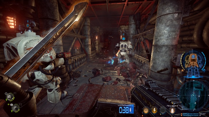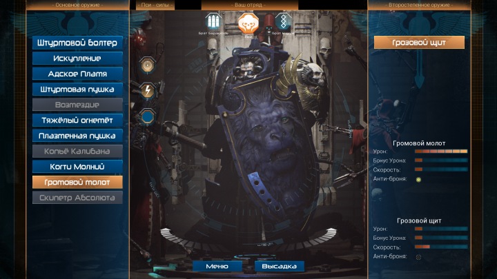 Начальный арсенал героя состоит из автомата-болтера и меча. По мере прохождения вы получите новые виды оружия, в качестве вознаграждения по итогам миссии или благодаря поиску реликвий на уровне. Каждый вид оружия уникален по ощущениям и свойствам, имеет свои плюсы и минусы. Скорострельный ручной пулемет обладает сильной отдачей и требует времени на раскрутку. Мощная плазменная винтовка легко разрывает врагов на части, но темп стрельбы очень низкий. Каждому напарнику можно назначить свой набор оружия, наделив его отдельной специализацией. Впрочем, в сингловом режиме нужен баланс, чтобы бойцы могли постоять за себя в разных условиях.