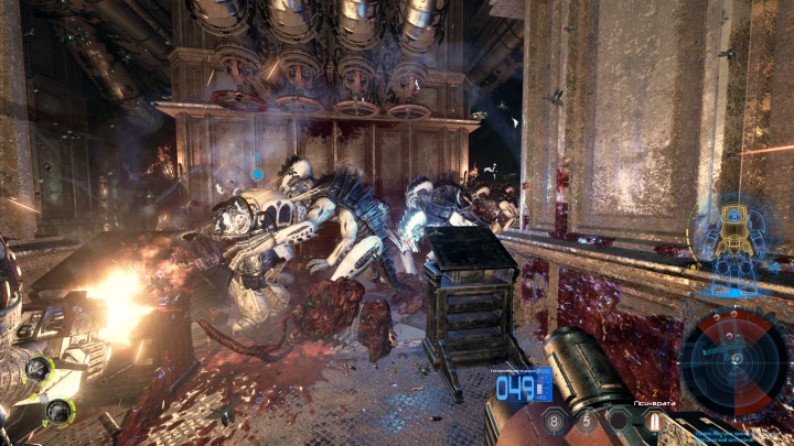 Проблема в том, что даже при некоей вариативности игра выглядит однотипной. Несмотря на наличие различных разновидностей, по факту можно выделить два основных типа монстров — одни набегают толпами, чтобы дотянуться до нас своими когтями, другие действуют на расстоянии, используя оружие. По ходу игры немного меняется их облик, появляются новые подвиды и более крупные тираниды в качестве мини-боссов, но монстры не отличаются в поведении. Игра не стремится выстроить какие-то оригинальные ситуации. Вы просто пробираетесь из одной точки в другую, отбиваясь от врагов, иногда удерживаете позицию в течение заданного времени. Крайне редки ситуации с более хитрыми условиями, где, например, нужно отбить опоры и закрыть ворота, отсекая монстров. Таких моментов, как-то влияющих на монотонный игровой процесс, должно быть больше.