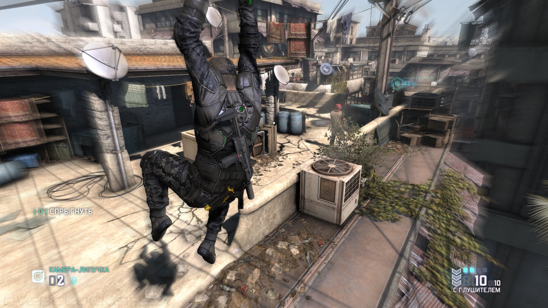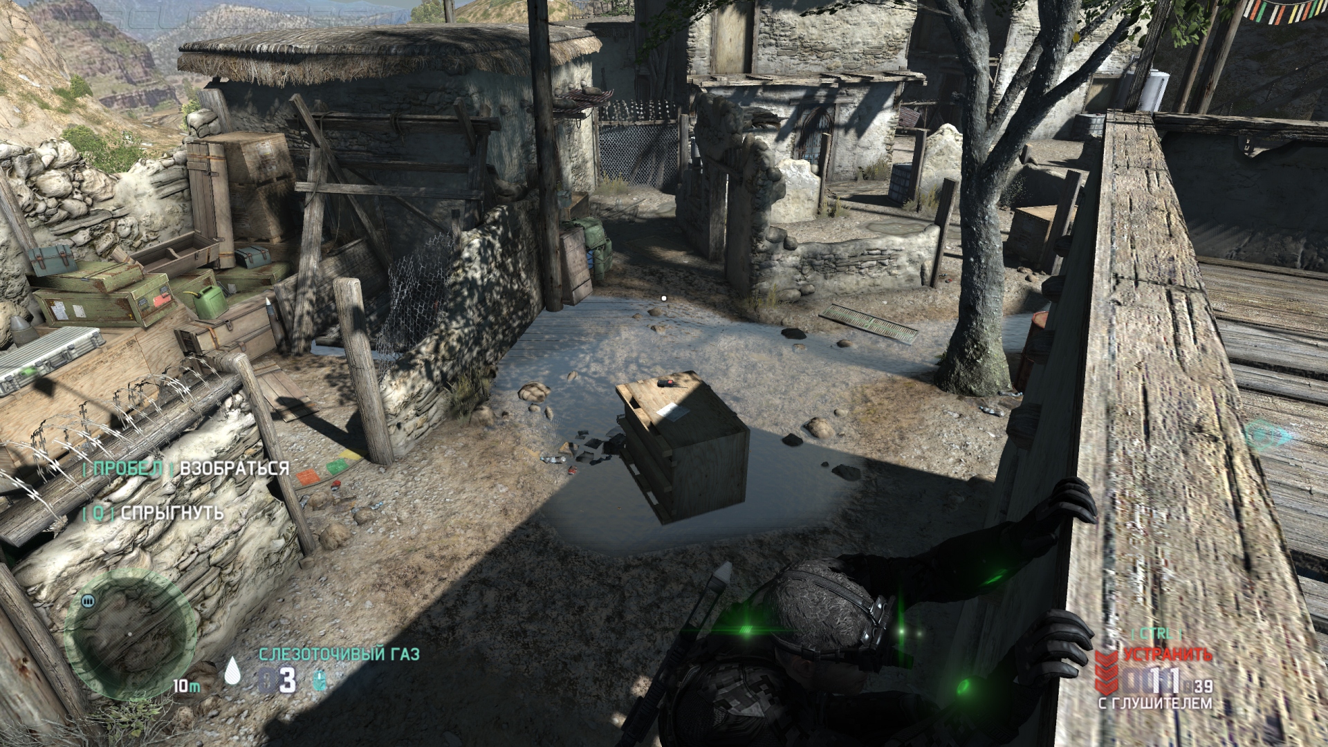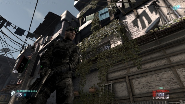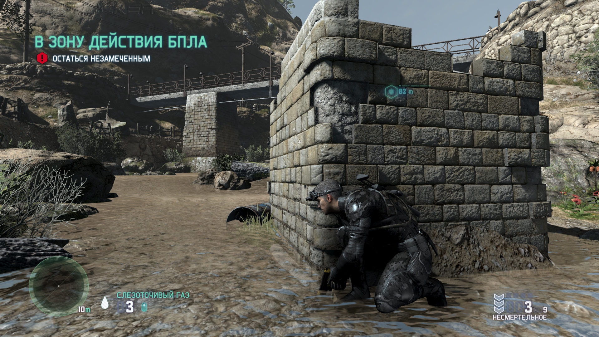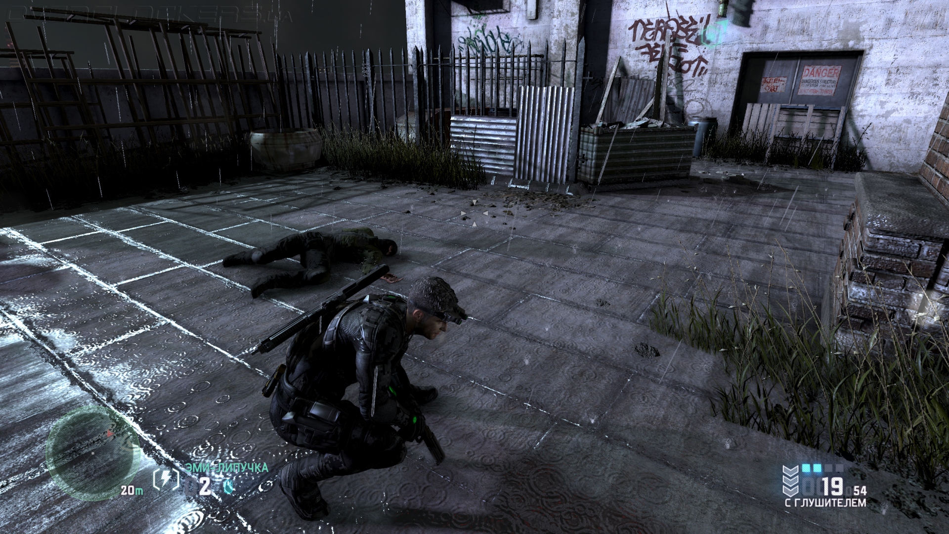 Дизайн уровень изначально рассчитан на такую вариативность. Кроме основного маршрута всегда есть небольшие ответвления: можно нырнуть в вентиляционную шахту или обойти врагов по карнизу дома, проникнув в помещение через окно. Уйти из зоны видимости помогут трубы у потолка. Система укрытий уже прочно увязана на прилипания к стенам, шкафам и разным ящикам. Порою это выглядит глуповато, особенно если часовой подсвечивает фонариком зону прямо за вжавшимся в укрытие Фишером, или выглядывает в окно, за которым висит герой. С другой стороны, такая система уже не дает полноценной гарантии скрытности даже в полной темноте. Стоит пошевелиться — и вас моментально заметят.