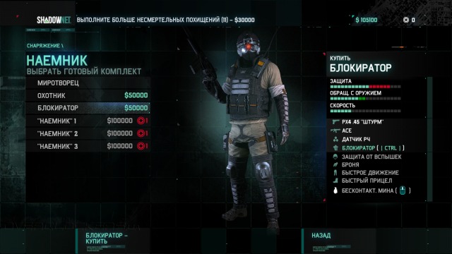 Все очки имеют свой прямой виртуальный денежный эквивалент, который идет на открытые новых шпионских устройств, расширения арсенала и апгрейд костюма. Стимулов к таким тратам очень много — от более мощного пистолета до трикоптера. Даже все возможности наших чудо-очков с тепловизором и сонаром, просвечивающим сквозь стену, открываются за деньги. Соответственно, чем эффективнее вы действуете на миссии, тем больше шансов открыть новое шпионское приспособление.