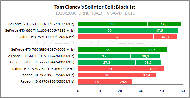 Можно говорить о преимуществе решений NVIDIA в этой игре. В свете недавно объявленной партнерской программы Ubisoft и NVIDIA это вполне ожидаемо. Да и в обработке тесселяции Kepler сильны. GeForce GTX 760 вполне сопоставим с топовыми AMD Radeon. Если отказаться от сглаживания, то высокий fps легко обеспечат и более слабые карты.