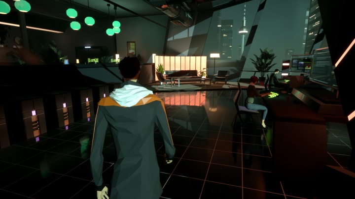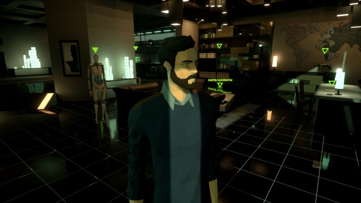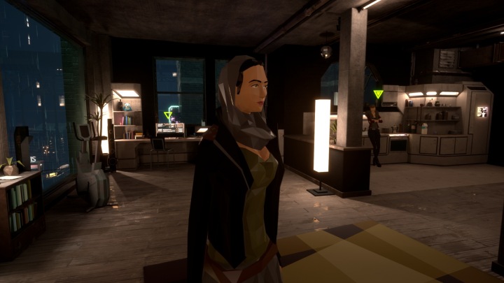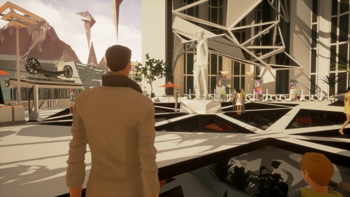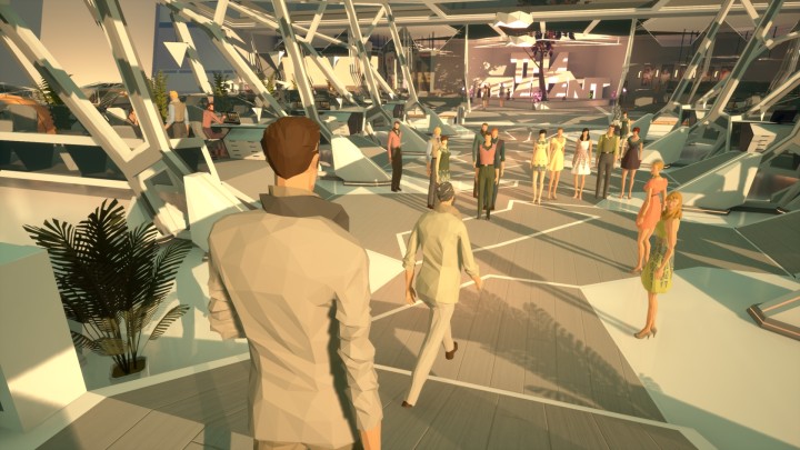 Как видно по скриншотам, State of Mind имеет необычную визуальную стилизацию. Это нарочито низкополигональные фигурки людей и элементов окружения, что сочетается с насыщенными световыми эффектами и обилием блестящих поверхностей. Выглядит странно, но в футуристической тематике с виртуальными мирами, такое исполнение даже играет на общую атмосферу, подчеркивая самобытность игры.