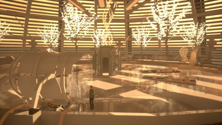 Никаких запутанных головоломок тут нет. Хотя ближе к концу есть пару продуманных загадок. Много небольших мини-игр для взлома или другого простого взаимодействие с окружением. Например, нужно восстановить видеозапись — для этого меняем фрагменты окружающей панорамы, пока не соберем нужную сцену.