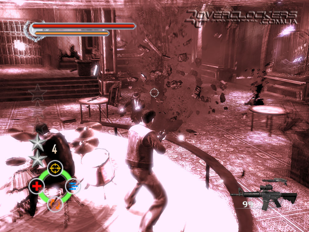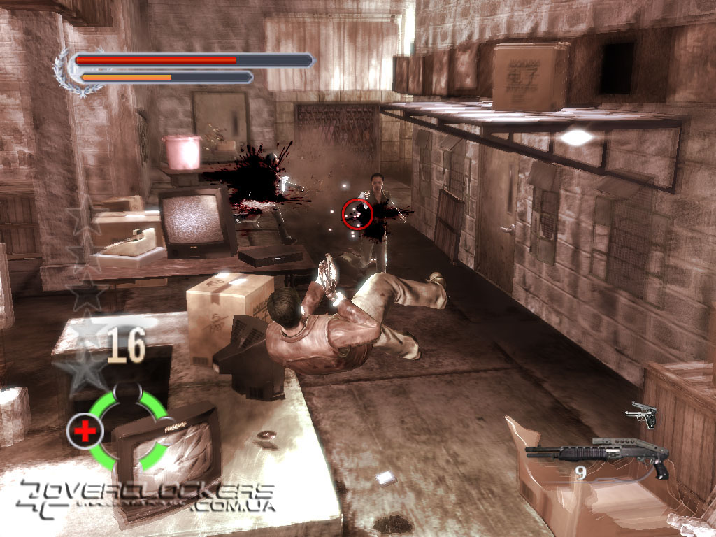 В начале игра откровенно вызывает ностальгию по Max Payne. Уж больно похож игровой процесс. Все что требуется от нас - это бегать и отстреливать противников, пользуясь замедлением времени, которое здесь называется Tequila Time. Добегаем до очередной кучки противников, делаем длинный замедленный прыжок и поливаем свинцов бандитов. Как все знакомо... Но не торопитесь с выводами. Стоит поиграть немного дальше и игра начинает безумно затягивать. У нас появляются специальные возможности. Для использования их нам необходимо максимально эффективно и красиво убивать своих врагов. Зарабатывая на этом очки, мы можем использовать частичное восстановление здоровья, прицельный выстрел, ярость или самый мощный прием, позволяющий убить всех в зоне видимости. Игра стимулирует пользоваться всеми способностями, ведь только за счет наших спецспособностей мы можем пройти сложные моменты в игре. За простое убийство мы не получим ничего, а вот за многократное убийство в красивом прыжке индикатор наших способностей сразу заполняется.
