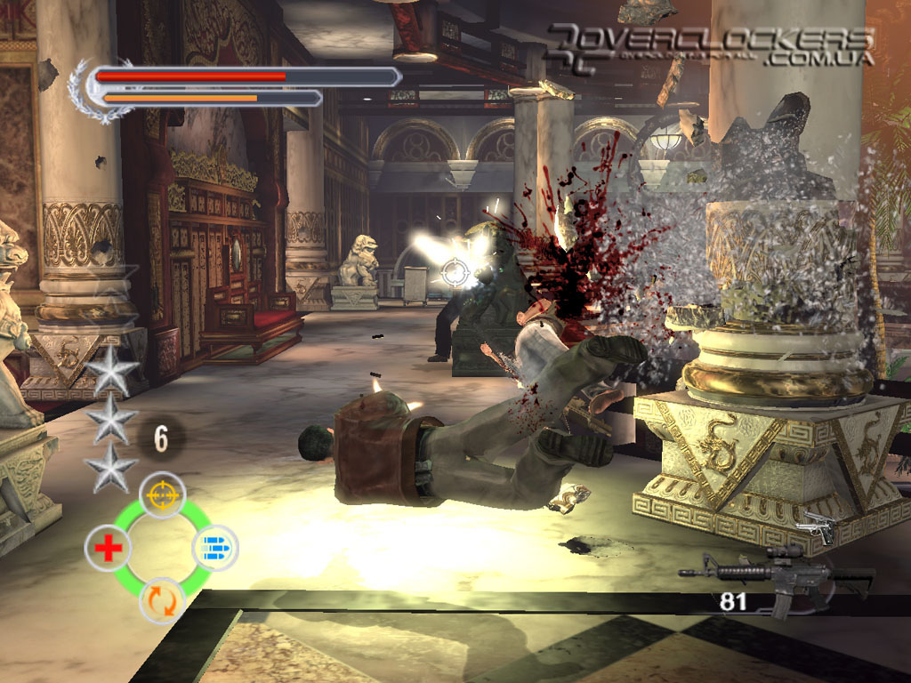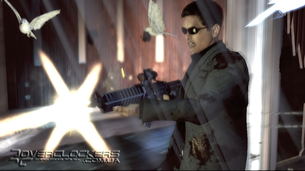 А круговой разворот инспектора Текилы поможет избавиться от врагов, когда они нас окружили. Все, кто попадают в зону поражения, будут мертвы. Причем эта способность не требует нашего вмешательства, мы просто наблюдаем короткий видеоролик. Лучи света, разлетающиеся голуби, пули и отлетающие гильзы - все выполнено в духе фильмов Джона Ву. Безумно красиво и красочно.