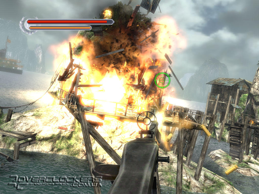 Уровни заполнены разрушаемыми объектами. Множество бочек, ящиков, китайских фонариков, торговые лавки с продуктами, строительные леса - все это рассыпается и разрушается, сопровождая все это буйство на экране столпами искр от пуль. А колонны разлетаются на осколки не хуже чем в "Матрице".