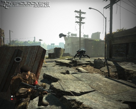 В компании нескольких напарников (за время игры численность нашего отрядя колеблется от трех до четырех человек) мы методично зачищаем улочки разрушенного Лос-Анджелеса. Геймплей на первый взгляд до боли напоминает Gears of War. Все завязано на системе укрытий и передвижению от одного укрытия до другого. Локации разбиты на небольшие участки, на которых расставлены эти самые укрытия. Каждая стыка проходит довольно просто, главное найти подходящее укрытие и, периодически выглядывая из-за него, отстреливать надоедливых роботов.