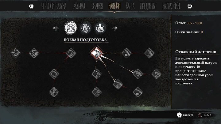 Не стали ребята из Frogwares заморачиваться и с прокачкой. Она есть, но представлена только пассивными скиллами. Да и те в большинстве своем очень сомнительны. Например, 10% шанс критического попадания при стрельбе из винтовки, которую достаешь едва ли пару тройку раз. Лучше качайте здоровье и психическую защиту.