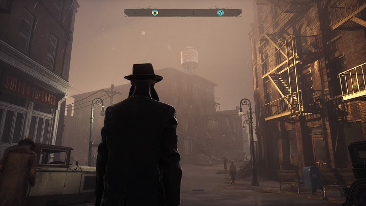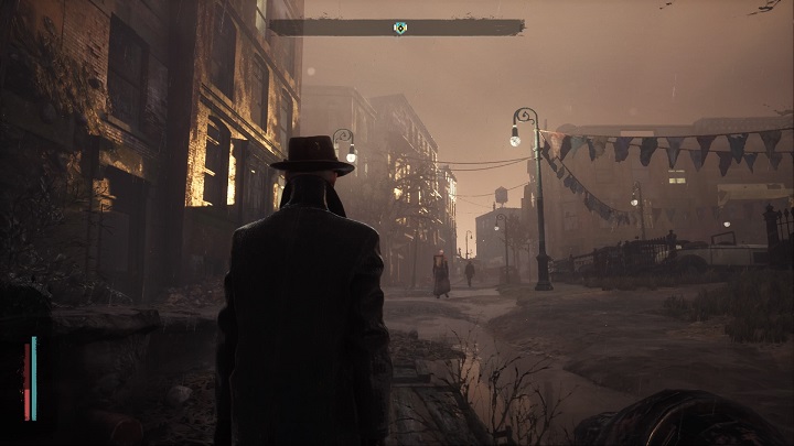 Сам же город Окмонт зловещ и мрачен. Но уже на второй час игры понимаешь, что это пустышка и декорация к сюжету. Первым делом в глаза бросаются клишированные дома и затопленные районы. Потом замечаешь — город почти пустой, а с теми людьми, что есть, никак нельзя взаимодействовать. Привлечь к себе внимание заскриптованного NPC можно только выстрелив в него, но согласитесь, что это плохой и заведомо провальный способ начать общение.