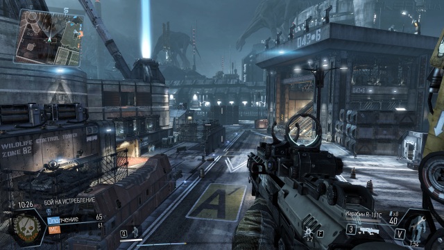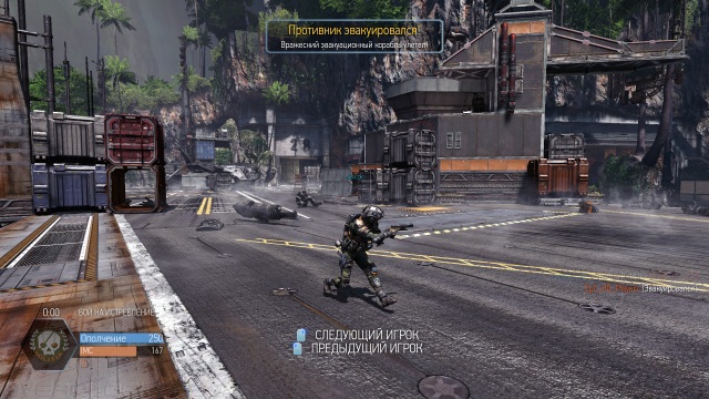 Это касается и арсенала пилотов титанов. В игре нет огромных списков оружия. Несколько пистолетов, несколько гранатометов и с десяток типов основного огнестрельного оружия. Но каждое уникально по параметрам убойности, скорострельности и дальности. Присутствует дополнительный «обвес» в виде глушителей, прицелов и т.п. Имеются дополнительные боевые умения (по умолчанию — частичная невидимость), их тоже немного, но они абсолютно разные и требуют продуманного подхода при выборе. Все это открывается по мере прокачки вашего бойца. Начальный набор трудно назвать мощным и новичкам придется туговато, хотя самая первая винтовка и самый первый титан и являются наиболее сбалансированными по ряду характеристик. Другое дело, что раскрыть потенциал первоначального меха без мощного оружия не получится. Каждая новая открытая пушка для титана оказывается все мощнее, хотя в плане прицеливания и скорострельности может значительно проигрывать. Мехи не лишены бойцовских качеств и в случае близкого столкновения могут лупить врага своими железными ручищами. А если титан противника уже на последнем издыхании, то удастся провернуть зрелищное добивание с выдергиванием пилота прямо из кабины.