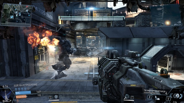 Кстати, есть в Titanfall и возможность автономного функционирования меха. После того, как выскочите из кабины, титан переключится в режим управления искусственным интеллектом, что позволит поддержать его в бою при помощи своего гранатомета.