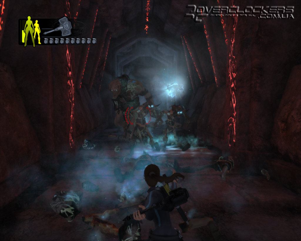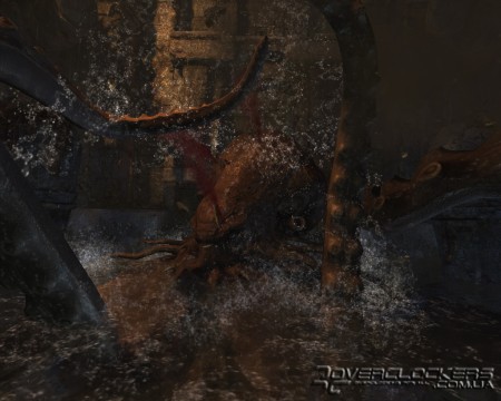 Впрочем, шутер из Underworld, в принципе, не получился. Камера ведет себя непредсказуемо, а чтобы уклониться от пуль, надо постоянно прыгать и кувыркаться. В итоге на небольших локациях (особенно на корабле) во время перестрелки камера, привязанная к Ларе, максимально ограничивает кругозор, показывая все, что угодно, кроме противников. Стрелять приходится почти наугад, не случайно же до сих пор в игре используется автонаведение.