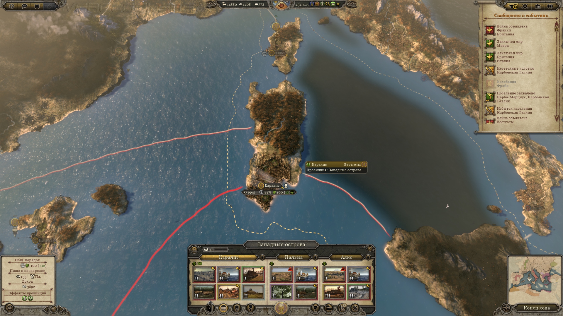 В определенных ситуациях выгоднее освободить захваченный город от чужой власти, отдав его коренному народу. К примеру, мне удалось совершить ранний марш-бросок через море на Апеннинский полуостров, не только разорив Рим в момент, пока его войска были отвлечены схватками на периферии, но и организовав постоянное сопротивление оставшимся силам в результате освобождения южных городов, сформировавших свое государство.