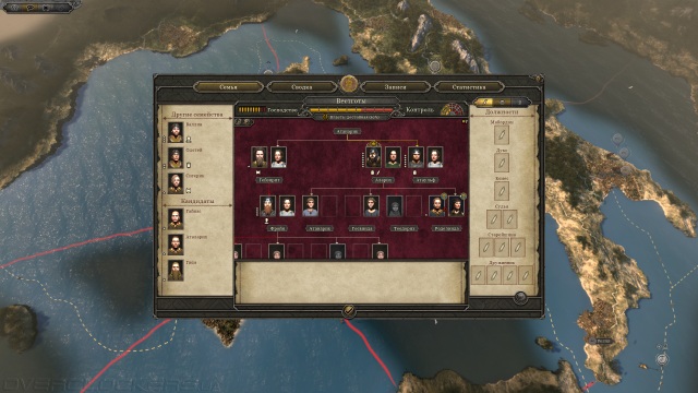 Игрок управляет всеми представителями правящей династии и элиты. Между ними тоже нужен свой баланс. Уровень влияния каждого определяется их поступками. И после отход в мир иной престарелого повелителя неопытный наследник может стать жертвой заговора недовольных сановников или амбициозного родственника. Если приемник успеет набраться сил и опыта, то сможет сам устраивать покушения и подкупать недовольных.