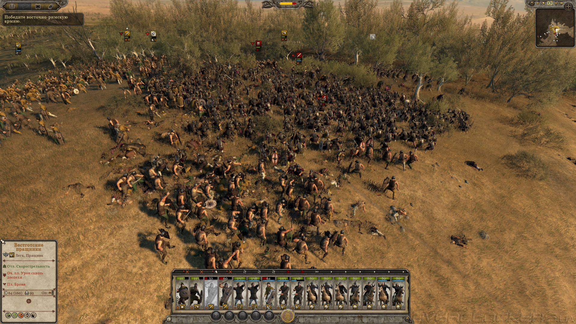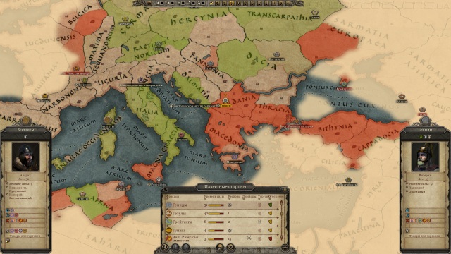 В самом тяжелом положении в начале кампании оказываются, наверное, те самые восточные готы, которым посвящен пролог. Они зажаты между молотом и наковальней — армиями гуннов и Константинополя. У их сородичей, вестготов, тоже положение не сладкое. Но если быстро закрепиться на Балканах, то можно поднабрать сил и впервые разорить Рим даже раньше отмеренной историей даты.