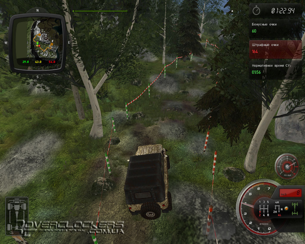 И эти тропинки еще в придачу огорожены ленточками. За сбитый столб и разорванную ленточку начисляются штрафные баллы. Так что можно добраться до финиша вовремя, и все равно не стать призером. В общем, почти автохардкор получается или занятие для игровых мазохистов, которые все это вытерпят.