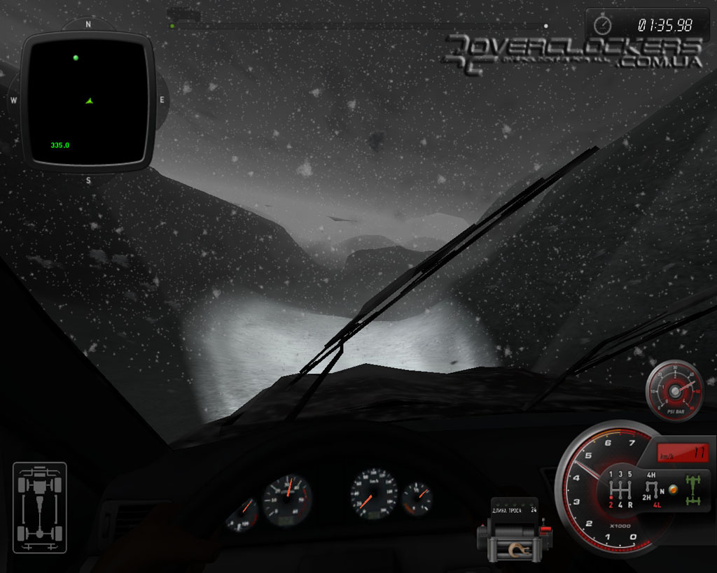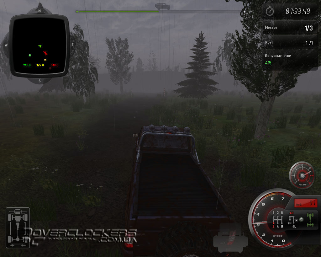 Вид от первого лица стал уделом экстремалов и истинных ценителей реализма. Рев мотора, звуки шлепающей грязи, дворники, очищающие от пыли, грязи или снега лобовое стекло – захватывает. Но вот увидеть хитро расставленный поворот или вписаться в извилистую тропку с ямами и кочками очень тяжело. Для экономии нервов приходится включать высокий вид от третьего лица и преодолевать все эти препятствия.