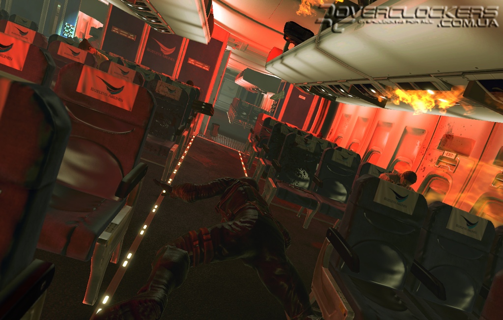 По такой схеме реализован и шикарный уровень в самолете, который падает вниз. Управляя персонажем, мы лишь помогаем ему взбираться вверх по сиденьям, а когда вверху появляется противник, игра автоматически входит в режим замедления времени, давая нам возможность в очередной раз сбить на лету несущуюся в нас пулю.