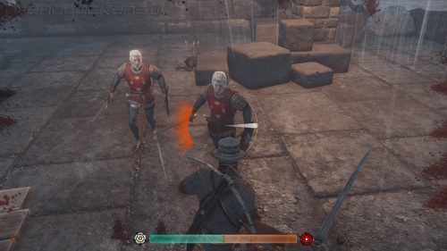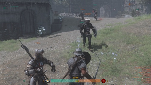 Оружие ближнего боя обладает разным радиусом поражения, в зависимости от длины и расположения лезвия. Нужно выдерживать определенную дистанцию. Если враг подошел вплотную, то вы натолкнетесь на него рукой с эфесом меча, не задев лезвием. Если у вас топор или алебарда, то попасть боевой частью ее сложнее. Отсюда и необходимость постоянного движения, в результате чего каждый поединок превращается в танец. Бойцы пытаются сблизиться для удара или отойти на шаг назад перед тем, как на вас обрушиться меч. При этом длинное оружие еще очень охотно цепляется за стены и деревья. Так что в узких коридорчиках мощный рыцарь внезапно может оказаться беспомощным. Тогда приходится переключаться на кинжал для ближнего боя. А еще не стоит забывать, что наши удары смертоносны и для союзников. Сражаясь плечом к полечу с товарищем, нужно рассчитывать, какие удары могут задеть его, а какие нет.