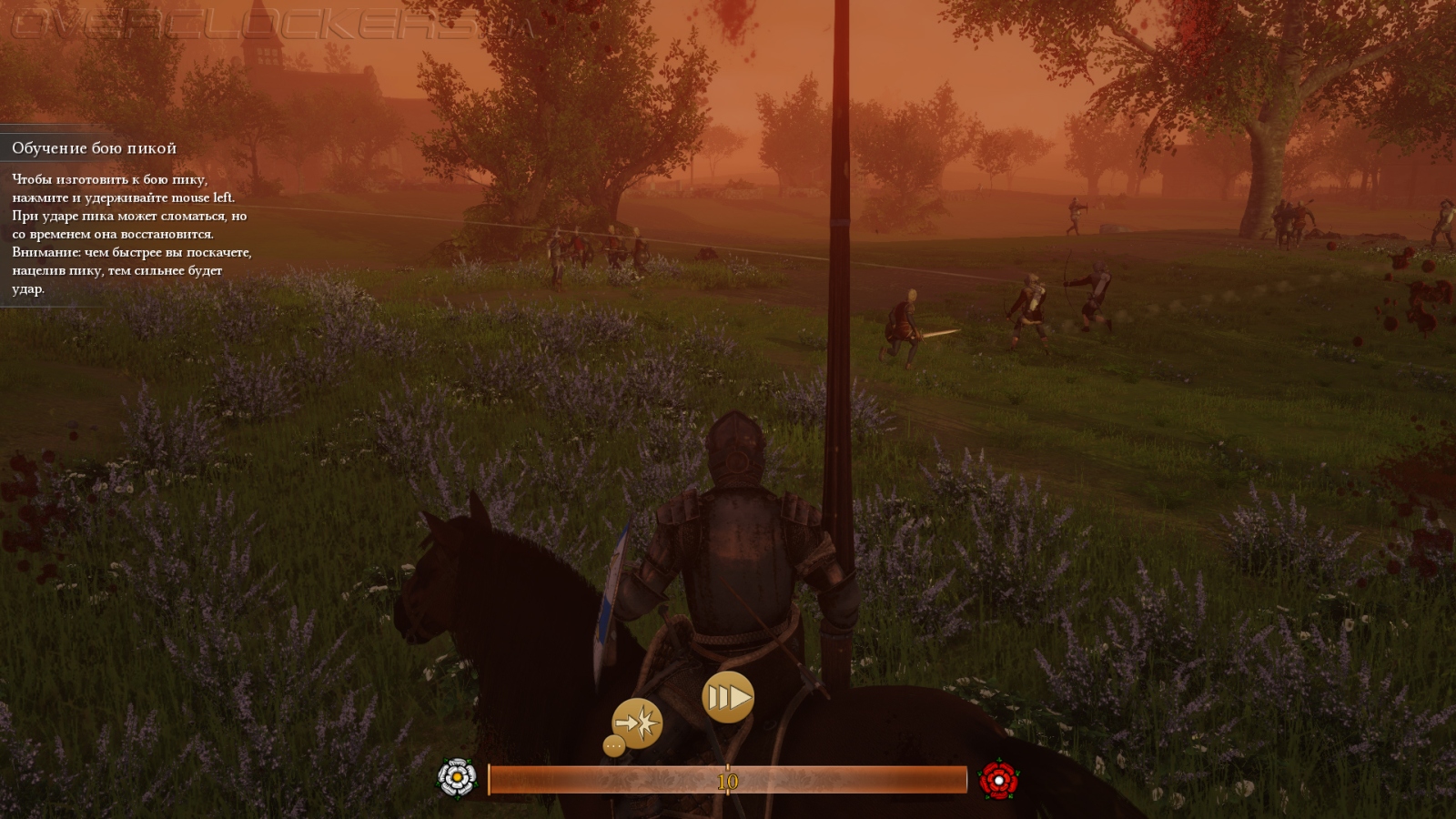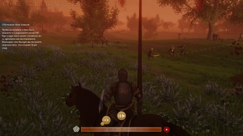 Есть в игре и всадники. Хорошо разогнавшись, такой боец своей пикой способен за один удар моментально уничтожить врага. Однако, чтобы овладеть искусством управления скакуном тоже нужно время и тренировки. Это на поле боя рыцари внушают трепет и сеют смерть. А когда сам впервые садишься в седло, понимаешь, что попасть по противнику не так уж и просто. Да и сама пика от мощного удара может легко треснуть, а с мечом на коне орудовать совсем неудобно.