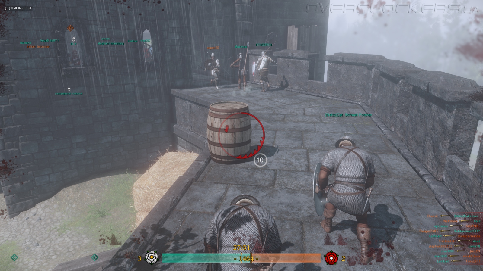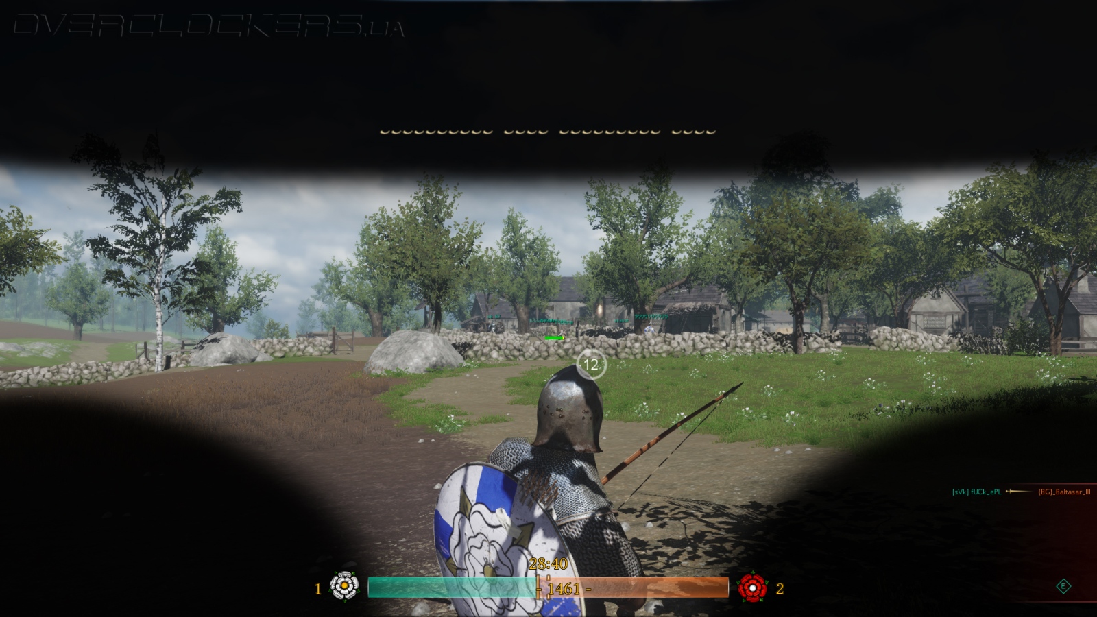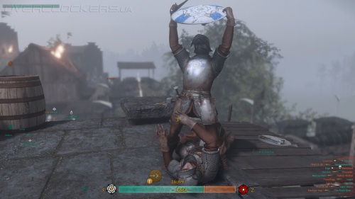 Говоря об амуниции, нельзя не вспомнить о нюансах использования шлемов. Дело в том, что некоторые из них имеют забрала, которые не только улучшают защиту головы, но и ухудшают видимость. Чтобы отобразить это в игре от третьего лица, разработчики придумали частично затенять изображение, уменьшая зону видимости. Оригинальный подход, который позволяет еще лучше прочувствовать особенности ведения боя в зависимости от выбранной защиты. Кстати, такие закрытые шлемы неплохо спасают от стрел. Представьте удивление, когда вы всаживаете во вражескую голову стрелу, слышите характерный звук хэдшота, но всплывающий символ сигнализирует, что весь удар поглотил доспех. В War of the Roses бывает и такое.