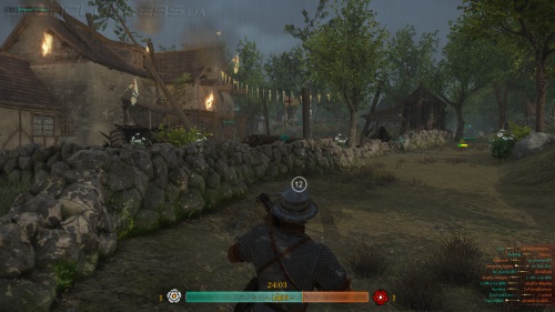 Именно в реализме главная особенность игры. Очень много нюансов, связанных с амуницией, доспехами и их влиянием на передвижение, не говоря уже о боевой системе. Ваш герой может наносить несколько типов ударов — рубящих и колющих. При этом направление движения оружия задается движением мыши, а сила удара зависит от того, как долго вы удерживали оружие после замаха. Чтобы ударить сильнее, нужно сделать предварительный замах и накопить сил для самого мощного удара. При этом рубящий в левом направлении требует замаха в правую сторону, а чтобы нанести удар справа нужно вначале отвести руку в противоположную сторону. Для колющего удара рука отводится назад.