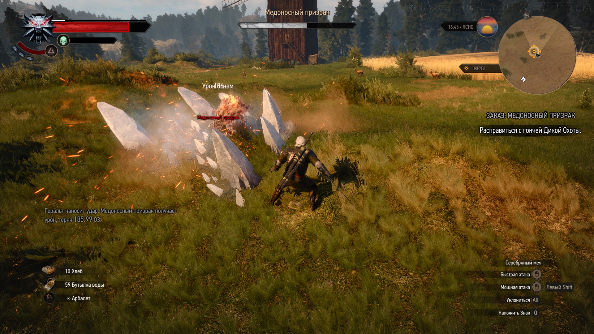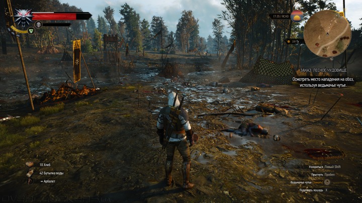 Большинство существ все же обречено стать трофеем нашего героя. Охота на монстров — его главное ремесло, ради которого ведьмаков и нанимают простые жители. Достаточно изучить доску объявлений в каком-то селе, чтобы узнать о заказе на монстра, ворующего скот или людей. Взявшись за задание, вначале нужно выяснить обстоятельства происшествия и тип врага, с которым предстоит встретиться. Это выливается в мини-расследование с изучнием следов и места смерти жертв. Получив точные данные о нападавшем, мы имеем возможность лучше подготовиться ко встрече с ним — запастись необходимыми зельями и амуницией.