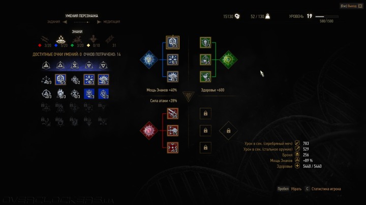Развитие персонажа завязано на прокачке его навыков, которые разбиты на четыре основные направления со специализированными улучшениями для фехтования, магии, алхимии и общих навыков. Открытые перки можно комбинировать с соответствующими мутагенами, повышая общие характеристики Геральта. Если заполнить одну ветку мутации тремя боевыми перками, то они дадут максимум эффективности с идентичным по цвету мутагеном. Последние тоже можно улучшать, например, создавать более мощные мутагены из слабых.