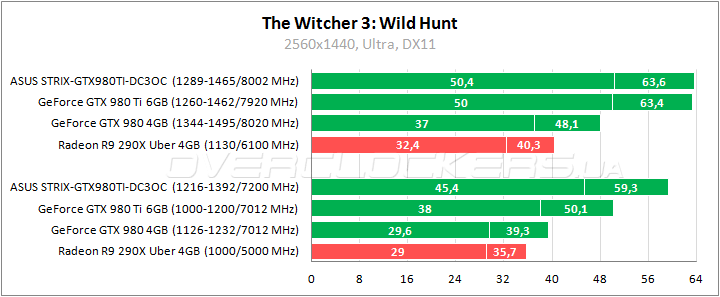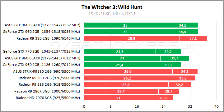 Недавние лидеры в лице GeForce GTX 980 и Radeon R9 290X справляются с таким разрешением при приемлемом уровне fps. А GeForce GTX 980 Ti выдает столь высокую частоту кадров, что удовлетворит самого требовательного игрока. Для разрешения 1920x1080 оптимальным вариантом будет GeForce GTX 970, хотя и разогнанный GeForce GTX 960 способен выдавать более 30 fps. Отметим еще, что решения на базе Kepler уступают новинкам. И у AMD первые видеокарты на базе архитектуры GCN заметно проигрывают моделям с обновленной архитектурой, что наглядно доказывает соотношение сил между Radeon R9 280X и Radeon R9 380.