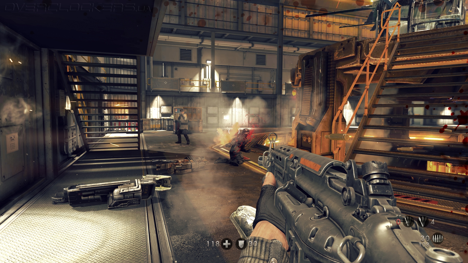 The New Order не чурается кровавости и исковерканных тел. От мощных взрывов тушки могут рассыпаться на куски мяса, головы от пуль лопаться подобно тыквам, а лазерное оружие уродует еще живых фрицев ожогами.