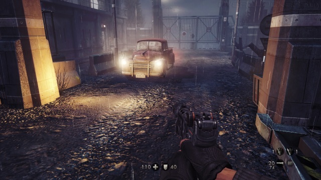 Чего не хватает игре, так это достойной графики. Базируется The New Order на старом движке id Tech 5. Картинка не особо далеко ушла от Rage. Проработка и детализация вроде неплохая, но не хватает фактурности и рельефности. Основные улучшения со времен Rage коснулись световых эффектов (слепящие фонари, блики, лучики и т.п.). Появились линзовые эффекты, которые немного размывают задние планы и делают более резкий фокус на персонажах во время сюжетных сцен.