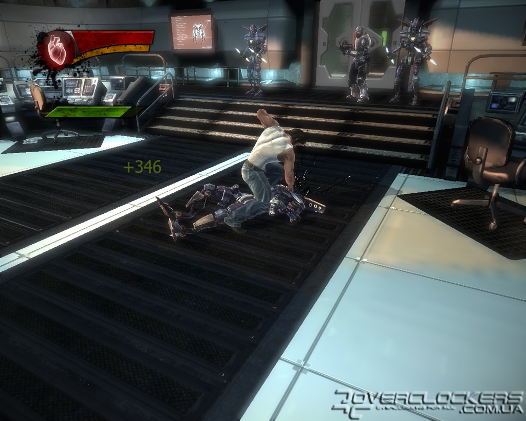Честно говоря, процесс нарезки и рубки несчастных солдат принимает некое однообразие, поэтому нам иногда скармливают на убой огромных мутантов-здоровяков или еще каких-нибудь переростков. Да и ряд обычных противников по мере прохождения принимает все боле разношерстный вид. Появляются и какие-то шаманы с мачете, создающие множество своих копий, живые многорукие статуи, солдаты с механическими руками и различные мелкие роботы.