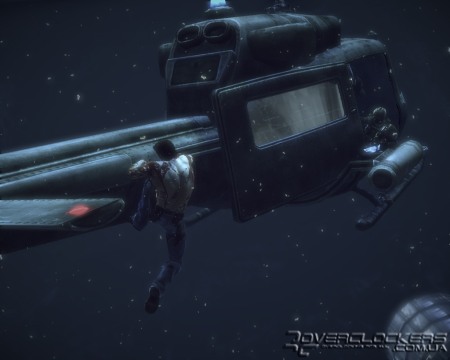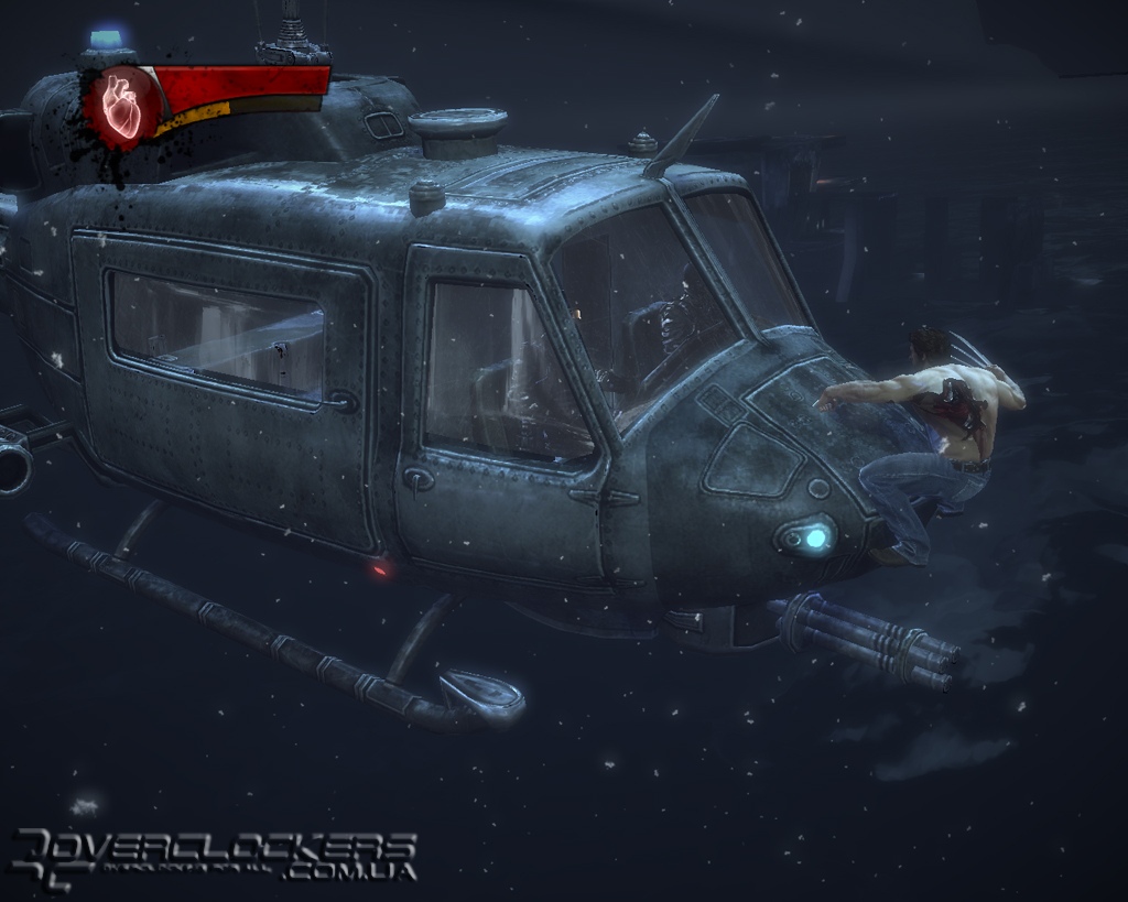 Главный герой вообще очень любит полеты. То с вертолета на вертолет прыгает и кромсает их по чуть-чуть, то огромного робота в свободном полете преследует, пытаясь раньше времени оборвать его электронную жизнь.