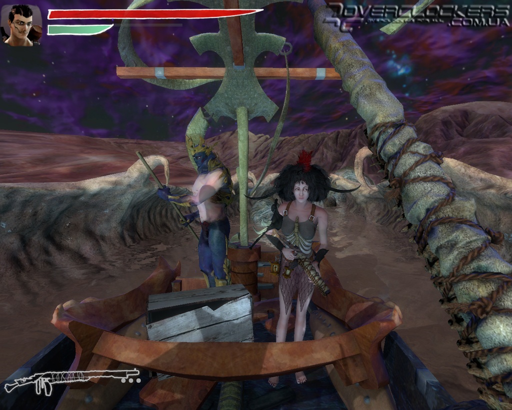 Естественно кроме кулаков нашлось в игре место и различному оружию. Есть мечи, которые являются единственным способом повергнуть какого-нибудь слоноподобного здоровяка. Не обошлось в Zeno Clash и без огнестрельного оружия, которое здесь представляет настоящее произведение искусства. Ружья, пистолеты и арбалеты собранны из каких-то костей, панцирей, да еще и заботливо обвязаны веревками. Ярчайший стимпанк, отдающий седовласой древностью.
