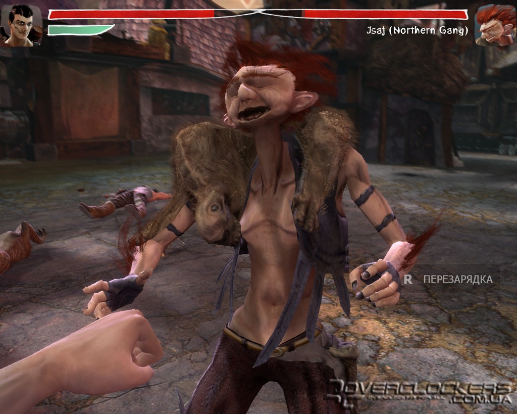 Но в течении игры времени на раздумья об этом нет — весь игровой процесс представляет из себя довольно динамичный экшн. Основной акцент сделан на драки. Наши кулаки — это основное оружие. Пару ударов и блок составляют основной набор нашего бойца, по мере игры будут открываться и некоторые более хитрые приемы. Но есть небольшой нюанс, осложняющий их реализацию. Для того чтобы провести их, надо сконцентрироваться на ближайшем противнике, тогда наши движения привязываются к нему, и мы можем успешно предугадывать удары, блокируя их, нанося контрудары, добивая поверженного врага ногой или колошматить его головой об колено. Когда враг один, это действительно удобно, а вот когда их уже куча мала, то в режиме концентрации мы представляем неплохую мишень для остальных. По-хорошему, надо очень быстро вставать в боевую стойку, сконцентрировавшись на враге, реализовать один-два приема и сразу вернуться в простой режим и отбежать. На деле, все это необходимо успеть за очень короткий промежуток времени и намного проще, не входя в режим концентрации, использовать лишь два основных удара, быстро отбегая в сторону. Так что при большом скоплении врагов все разнообразие боевой системы (кроме добивающих ударов) почти не используется.