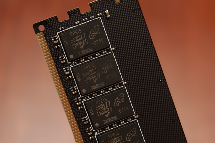 Микросхемы памяти используются производства Micron с маркировкой D9TZV-075E, по восемь штук на одной стороне планки, рассчитанные на частоту 2666 МГц с задержками 18-18-18. Поверх каждого чипа нанесен дополнительно логотип компании SpecTek.